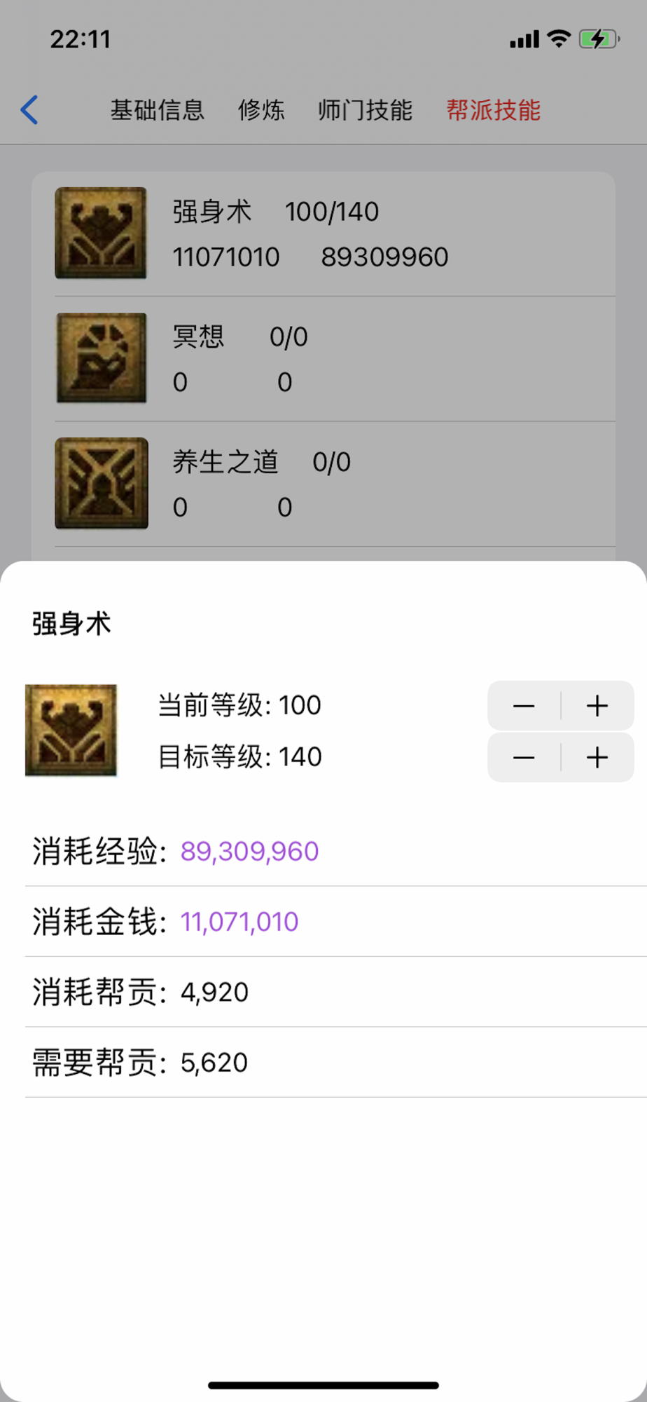 1. 养号工具, 可以统计升级到目标底子需要的经验值, 金钱和帮贡等数据.