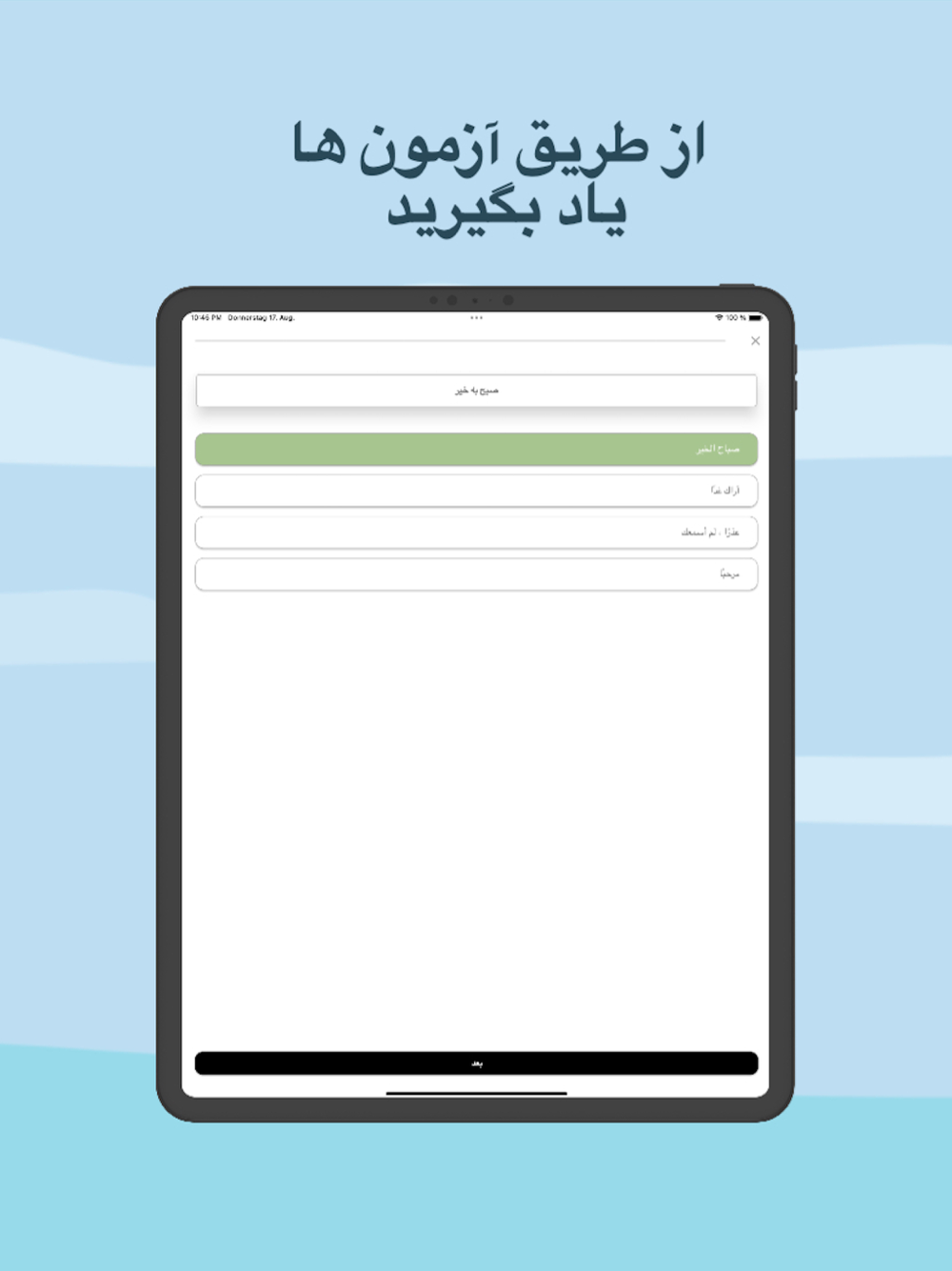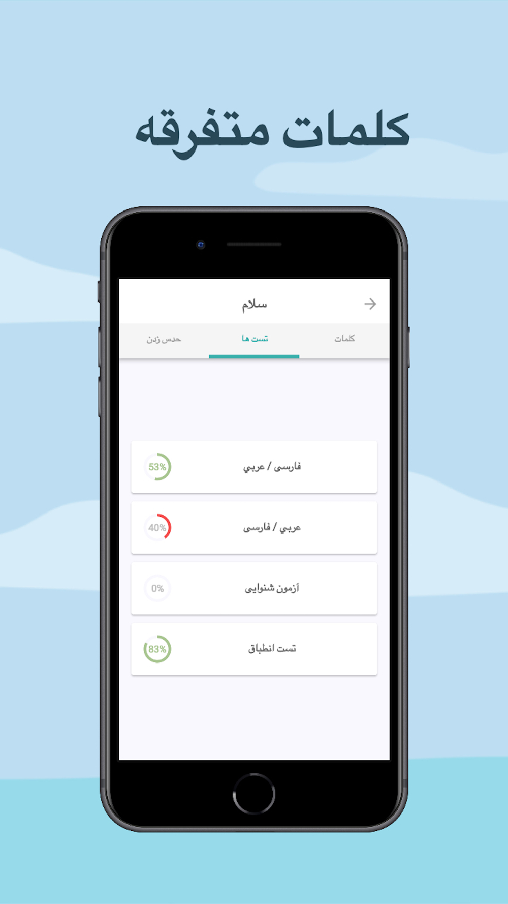 - تست های دستور زبان عربی، واژگان و مکالمه روزانه. شما به تدریج یاد خواهید گرفت و با اطمینان در سطوح مختلف خود پیشرفت خواهید کرد.