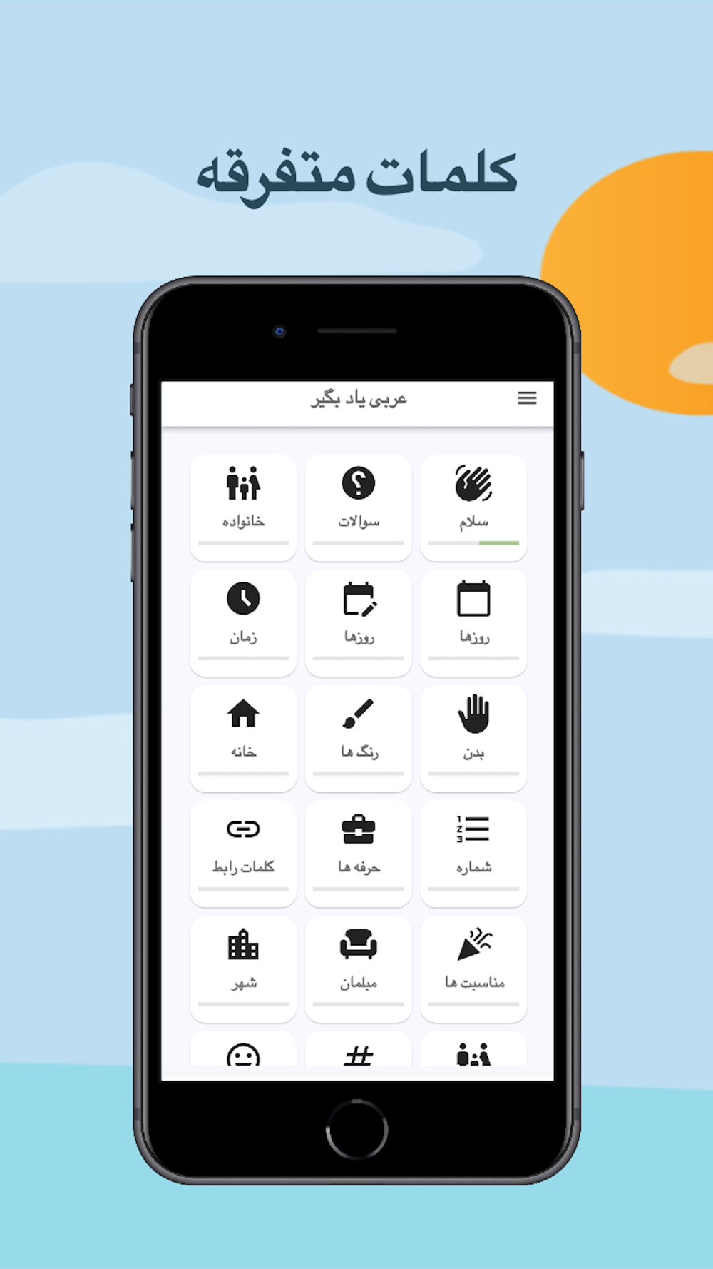 اپلیکیشنی برای تست و یادگیری زبان عربی در کوتاه ترین زمان با استفاده از مهم ترین کلمات عربی مورد استفاده در زندگی روزمره است.