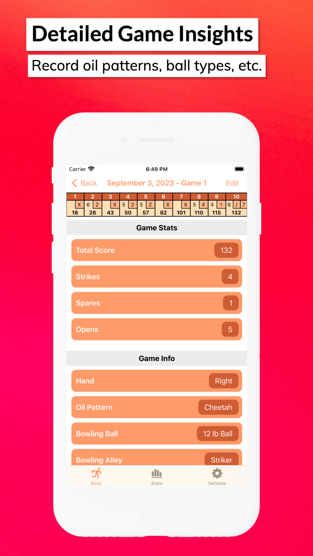 Was the oil pattern affecting your curve? Which bowling ball gave you the most strikes? Which alley has been your most lucky? LuckyStrike allows you to record specific details like the oil pattern, the bowling ball used, and even the specific alley. Analyze and understand your game like never before.