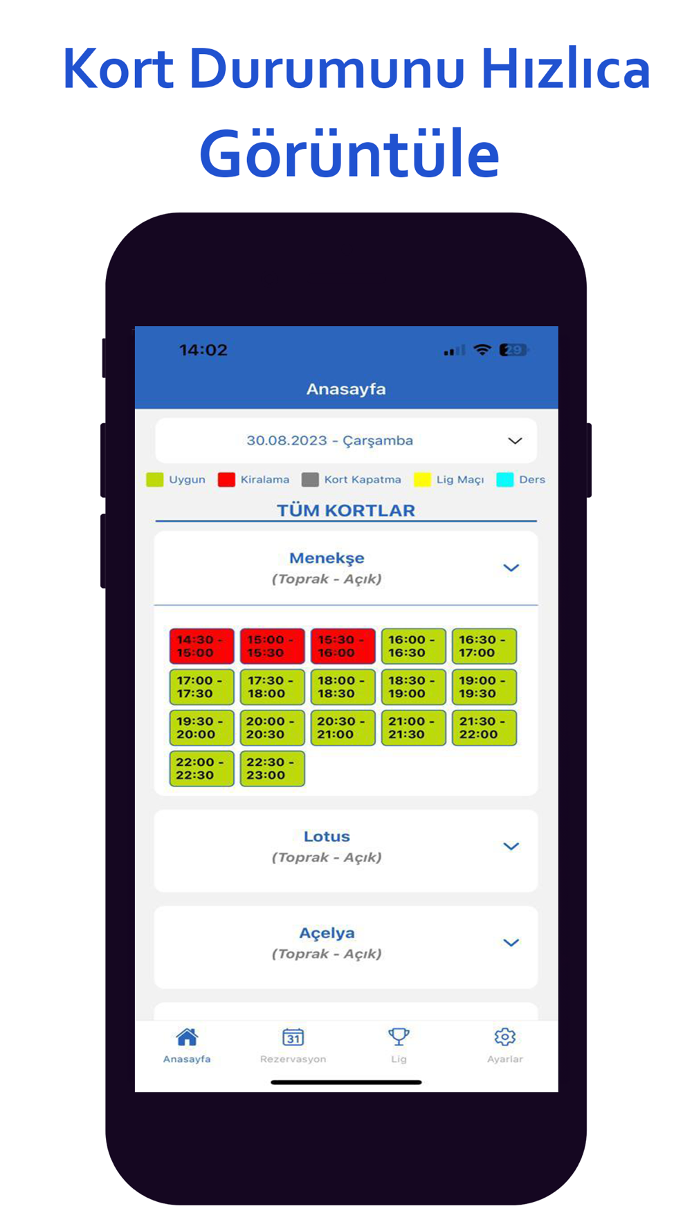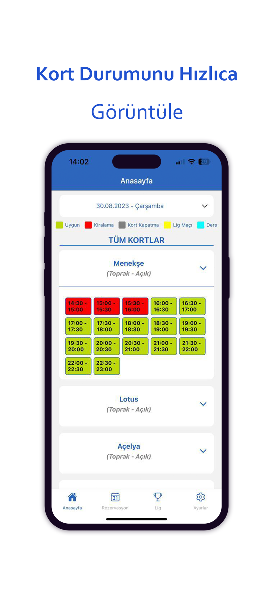 Online Rezervasyon: Artık kort rezervasyonu yapmak çok daha kolay! İstediğiniz tarihe ve saate uygun boş kortları görebilir, hemen rezervasyonunuzu tamamlayabilirsiniz.