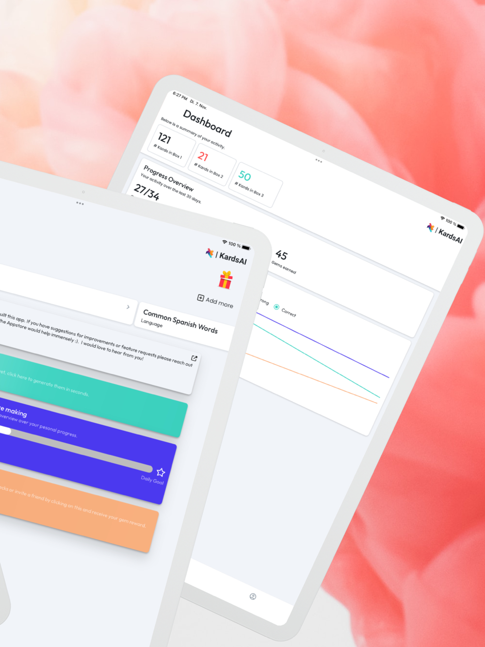 Whether you're studying for exams, learning a new language, or want to improve your memory, KardsAI has you covered. Our advanced spaced repetition algorithm ensures optimal learning, helping you retain information longer.
