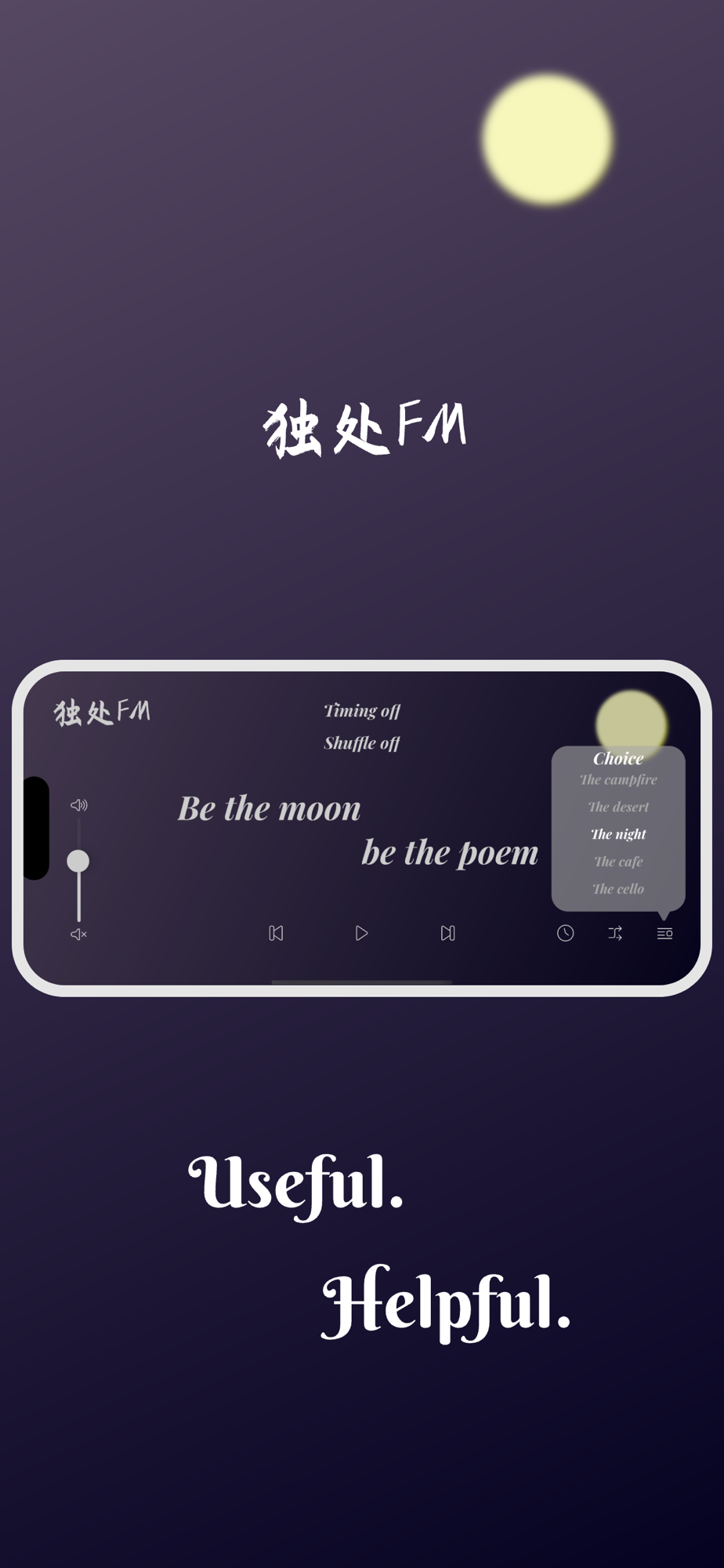 Once clicked the play button, 独处FM is in the infinite loop mode automatically. You can leave it to the background mode, focus on yourself, 独处FM is always serving for you.