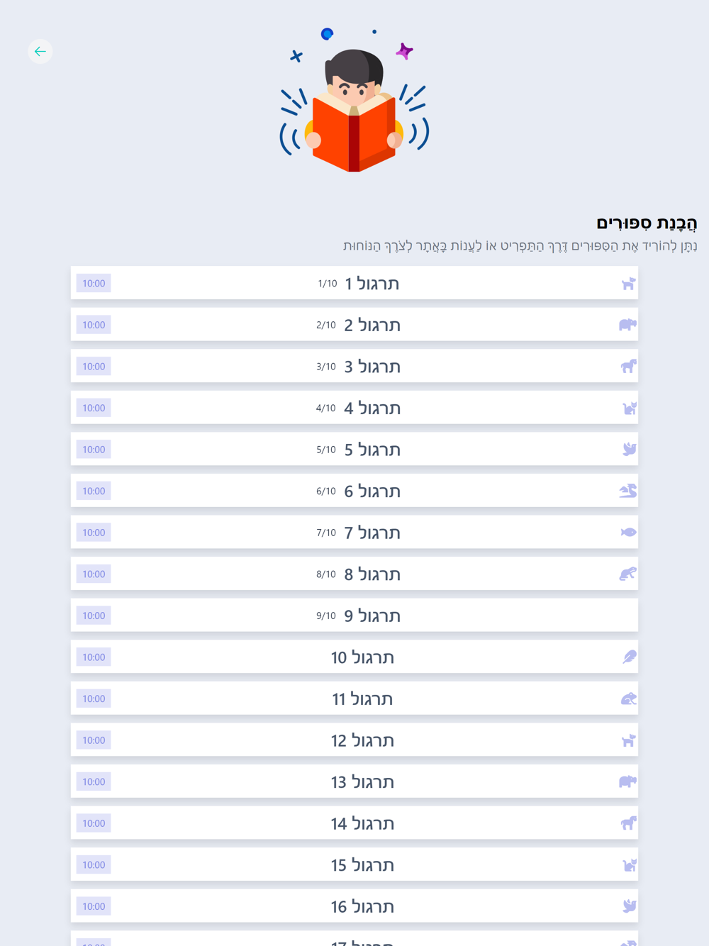 * ניתן להגביל בזמן את התרגולים או לתרגל ללא הגבלת זמנים.