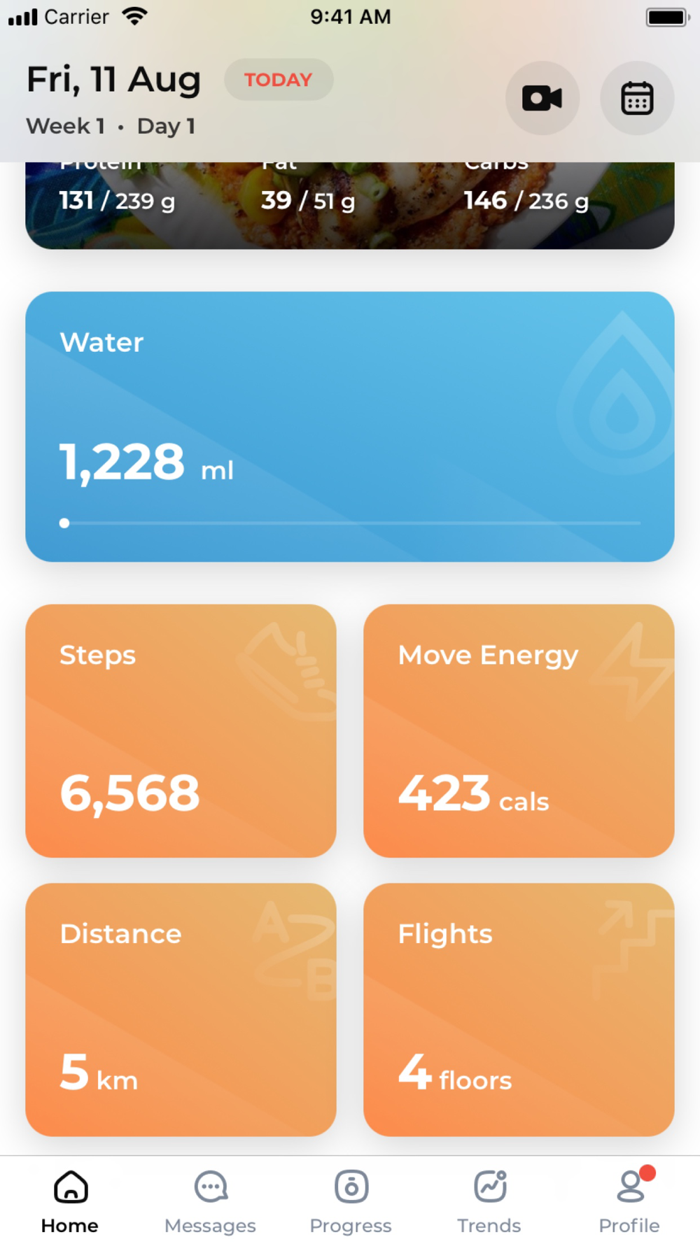 The app integrates with Apple Health to show your daily activity - distance, steps, active energy, and flights to help you better achieve your goals.