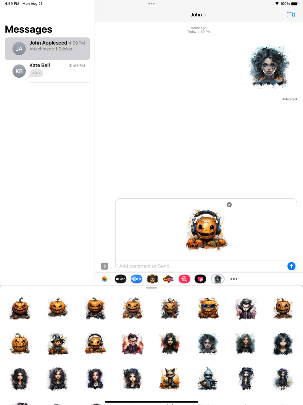 Spice up your iMessages with a touch of spooky fun! Unleash your inner ghost, witch, or jack-o'-lantern with our bewitching Halloween iMessage stickers collection. From adorable monsters to wickedly cute zombies, these stickers will add a boo-tiful twist to your conversations. Get ready to haunt your chats and send eerie greetings with our exclusive Halloween sticker pack. Download now and make your messages scream with delight!