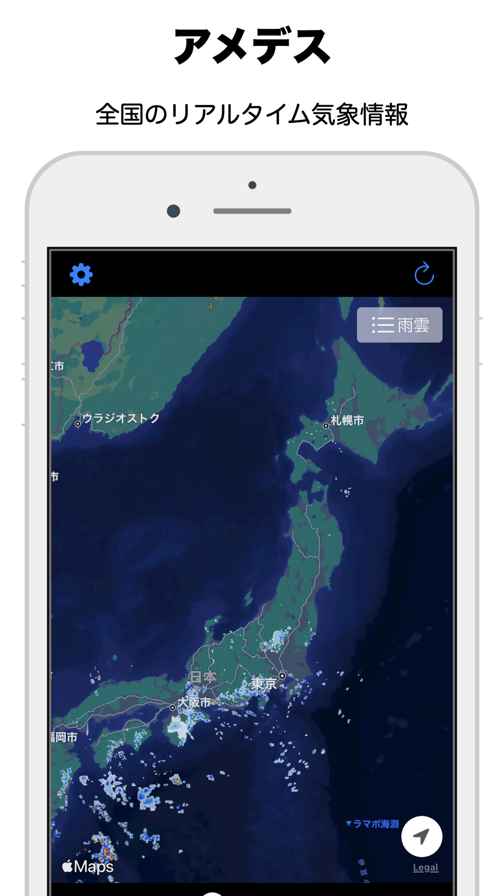 アプリケーションでは、最新の気象データをリアルタイムで表示することができます。