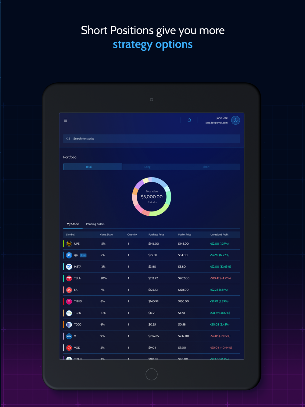 Expand your portfolio! With stocks tagged in different categories like #health, #technology and so on, you can pick and explore a field to your liking