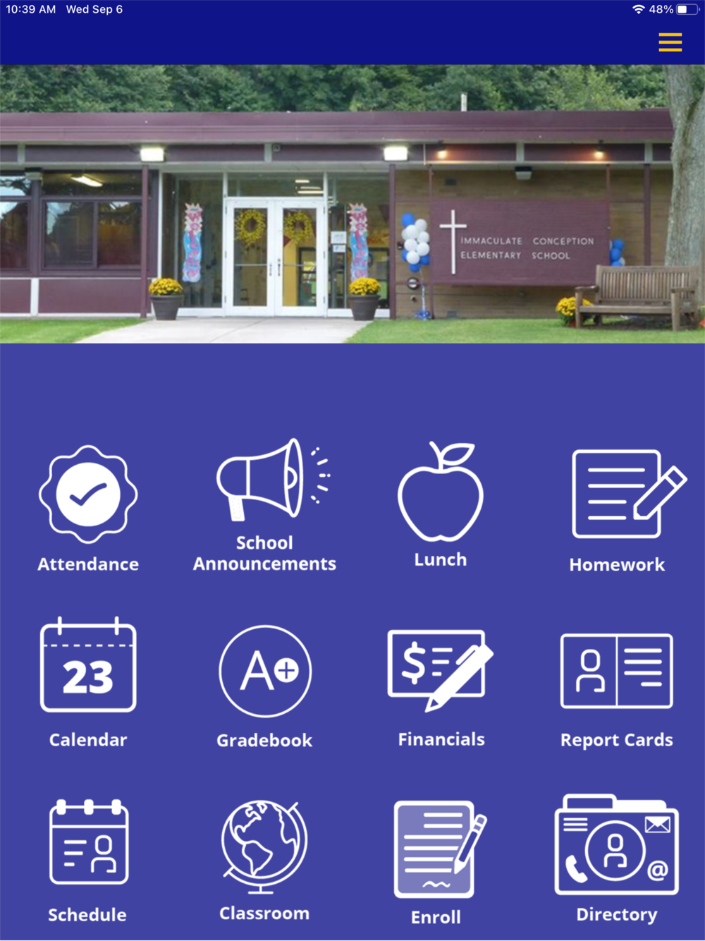 Welcome to the official app for Immaculate Conception School in Fayetteville, NY. This app is a one-stop-shop for our parents, students, and community, with anytime, anywhere access to all the tools, content, and communications needed to stay connected and engaged. This app is our primary communication portal and provides easy access to Announcements, Calendar of Events, Student Grades and Homework, Athletics, FACTS Financial and so much more!