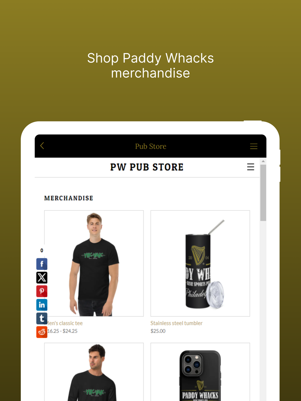 A Local Philadlephia Irish Pub looking to offer exclusive discounts, online ordering and view upcoming events at Paddy Whacks Irish Sports Pub. The target audience is 21+ Crowd in the Philadelphia Region.