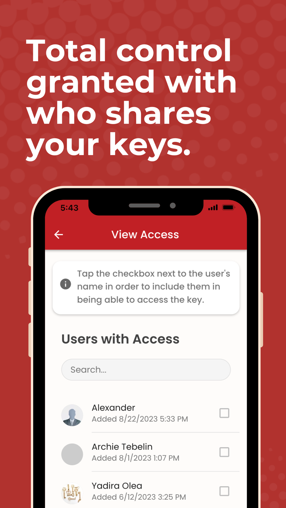 Track all of your keys in once place! Whether it be your house, garage, or summer vacation home, you can share access on what keys unlock what with others, or just yourself.