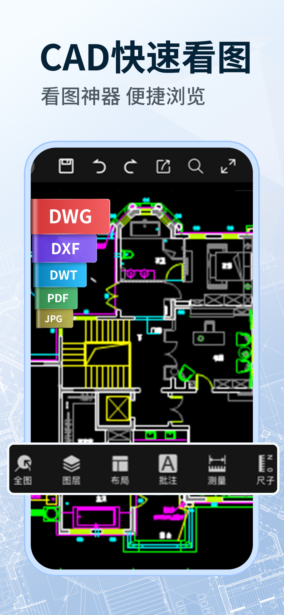 CAD快速看图是一款专业CAD看图的工具,支持DWG,SVG,PNG格式的文件,可快速查看图纸。