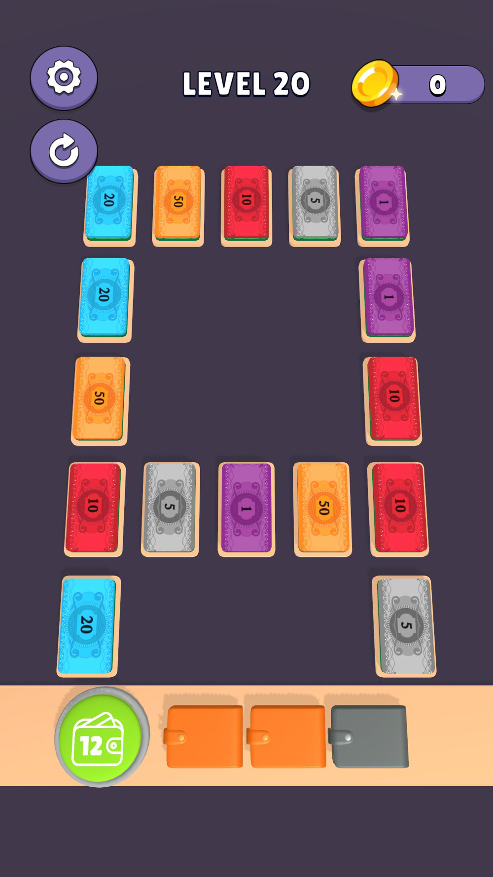 Welcome to the world of wealth in Money Match 3D, a dazzling puzzle game that combines color sorting and strategic thinking! Stack and sort the colorful moneys to their corresponding wallets at the bottom of the screen. Utilize limited wallet uses wisely, collecting same-colored moneys to clear the stacks. Can you manage your resources and achieve a money-filled victory?