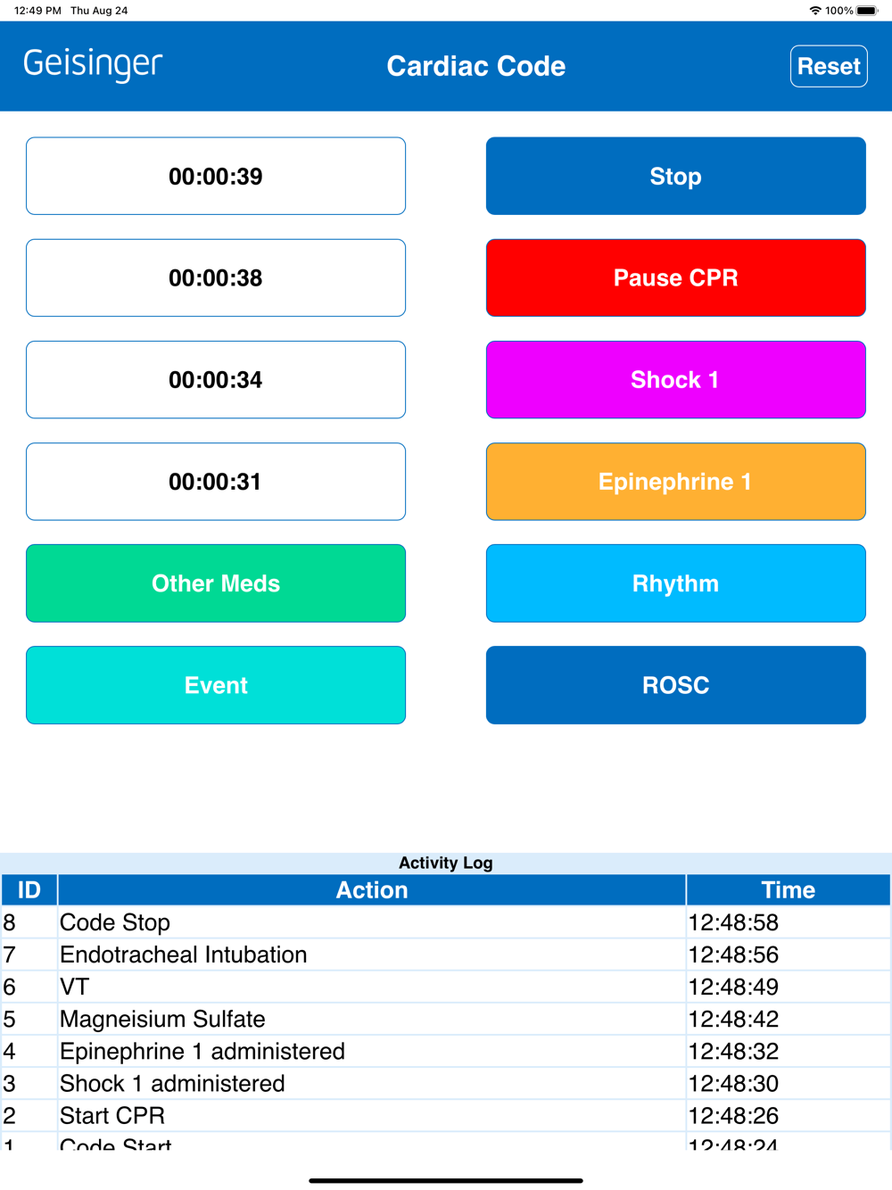 Geisinger emergency code logging application