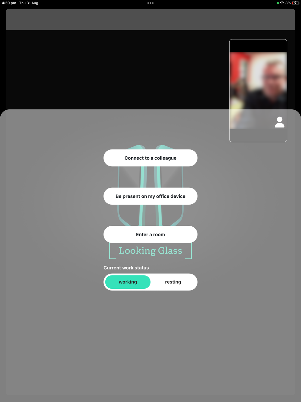 From there, you can access the services provided by your employer, such as 1:1 colleague connections, unlimited video duration, Home/Office device pairs, Status/Availability Sharing and Privacy Modes (on/off/auto).