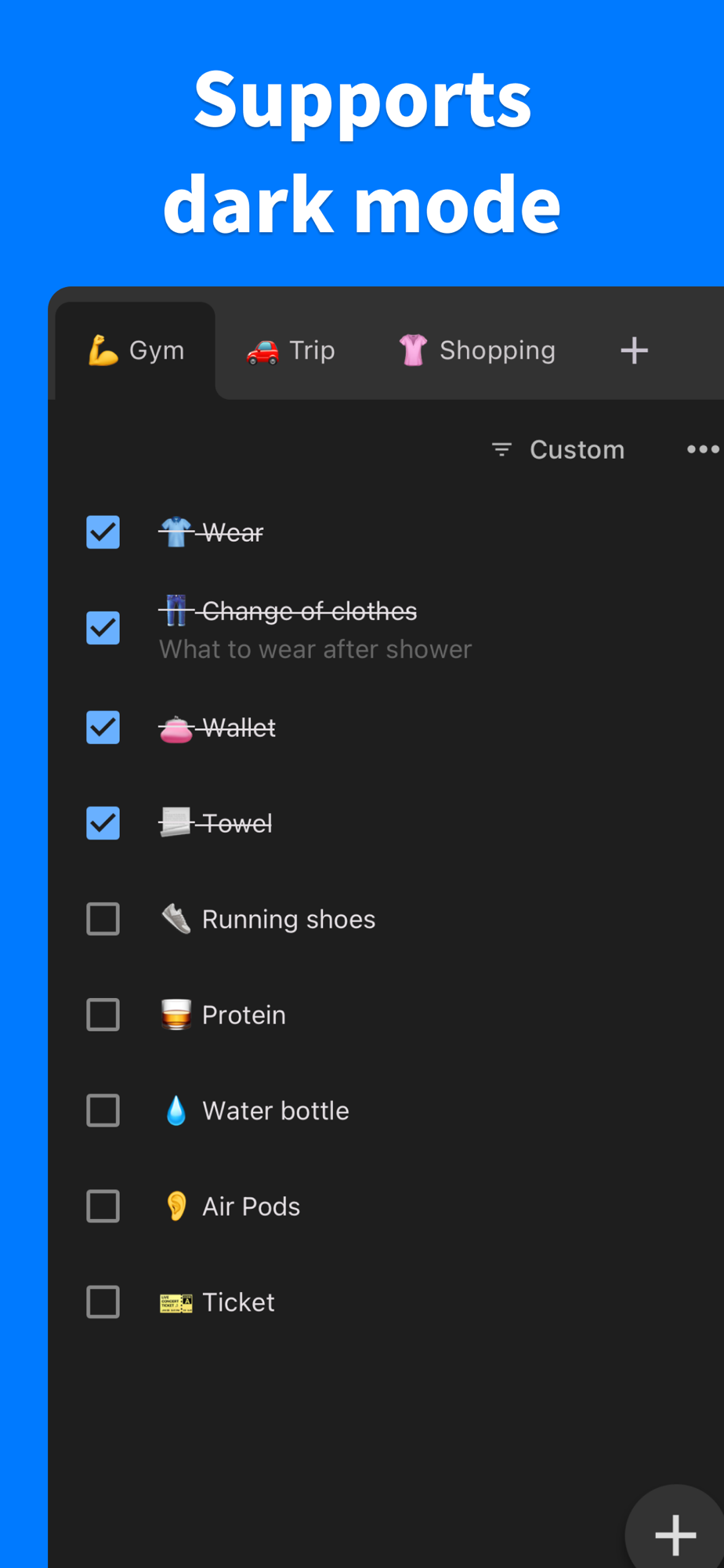 Make lists for gym visits, trips, and other outings to prevent forgetting items!