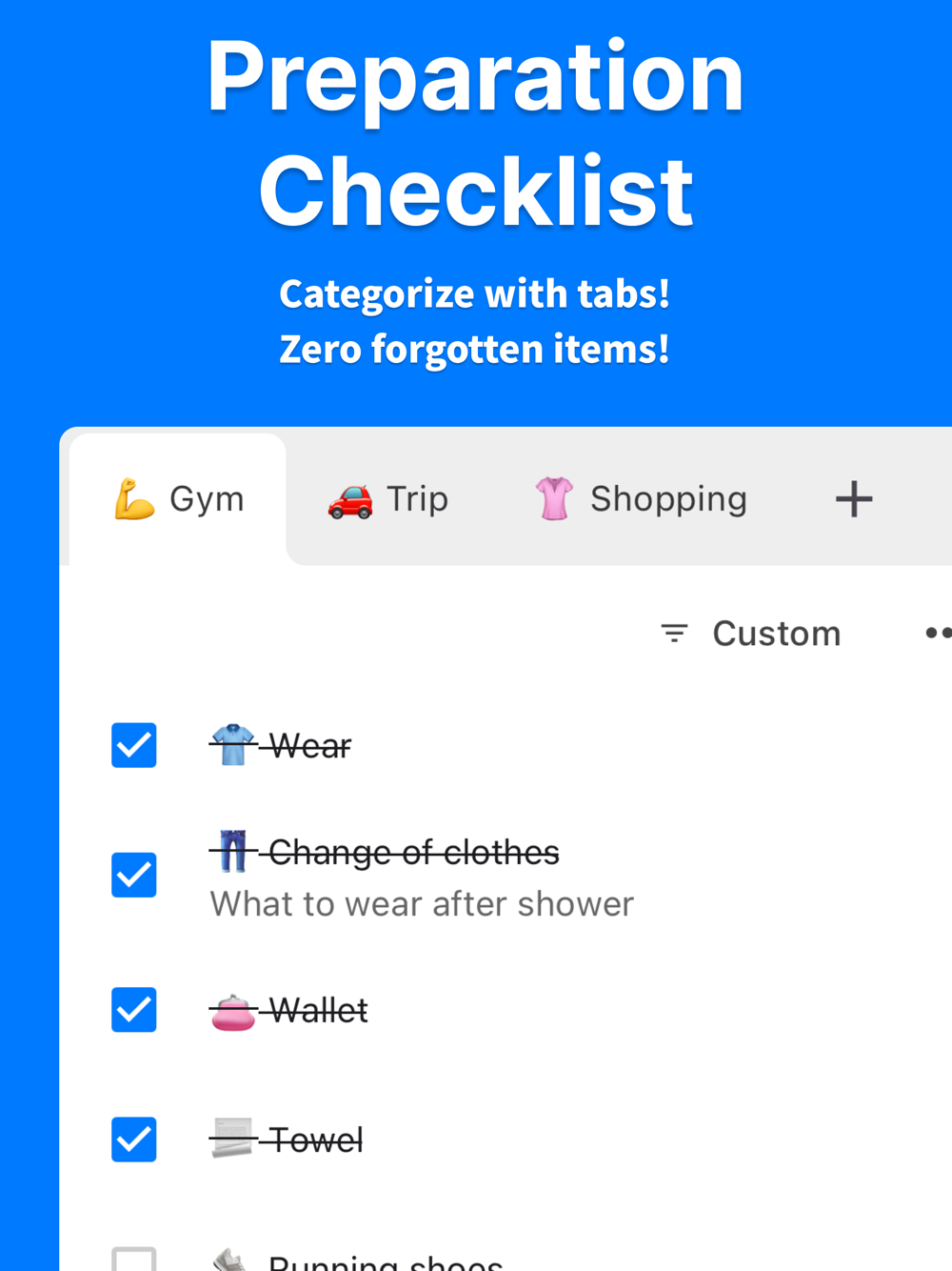 The perfect app for creating and checking your preparation lists.