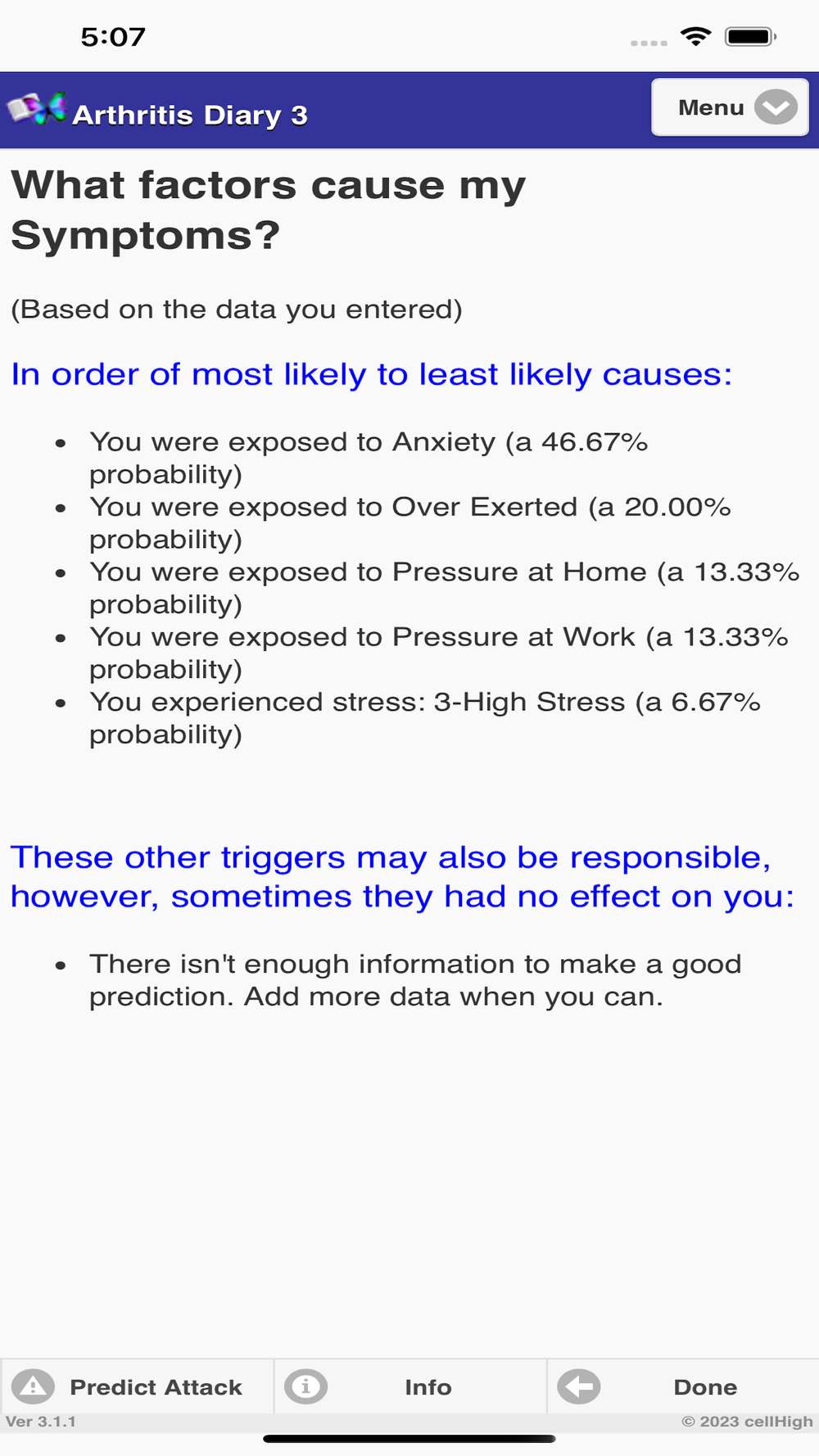 Are you like one of the millions of people who have OsteoArthritis? How can the Arthritis Diary help? The Arthritis Diary was designed to track information about your Arthritis with a few screen taps. Using this information, the application will allow you to use triggers, like day of month and week, weather patterns, diet, glucose level, sleep patterns, to predict and manage your Arthritis. The Arthritis Diary has a new “Trending and Forecasting” module that shows you which factors and triggers contribute to your fatigue and symptoms. This will help you feel better and will allow you to take control of your Arthritis. The Arthritis Diary makes it easy to perform tasks like tracking your treatment progress, graphing your patterns, emailing reports, including graphical attachments to your doctor and advisors. The Arthritis Diary will also allow you to export your data to a spread sheet all with just a few screen taps. Do you want all of your health records and information at your fingertips so that you can start feeling better. The Arthritis Diary can help.