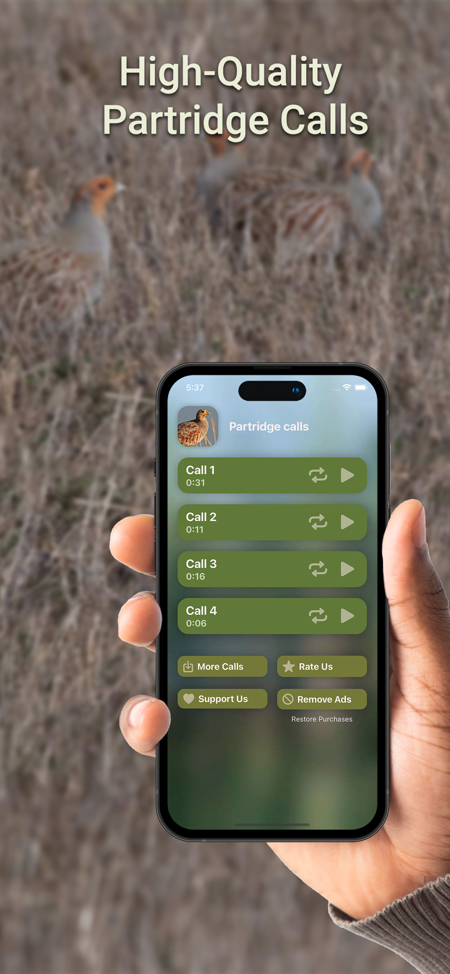 Partridge hunting calls is an app with a variety of high quality partridge calls. Get hunting calls and harvest a productive season.