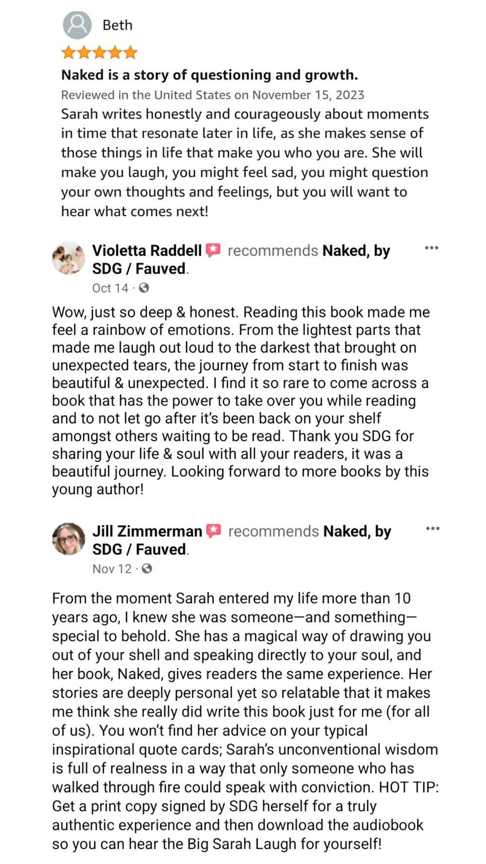 Sarah Dulany-Gring (SDG) is the author of Naked. She loves coffee, the ocean, and daffodils. She hates mosquitos, humidity, and olives. She lives in Central New York with her two fairly large mini-humans in a tiny house.