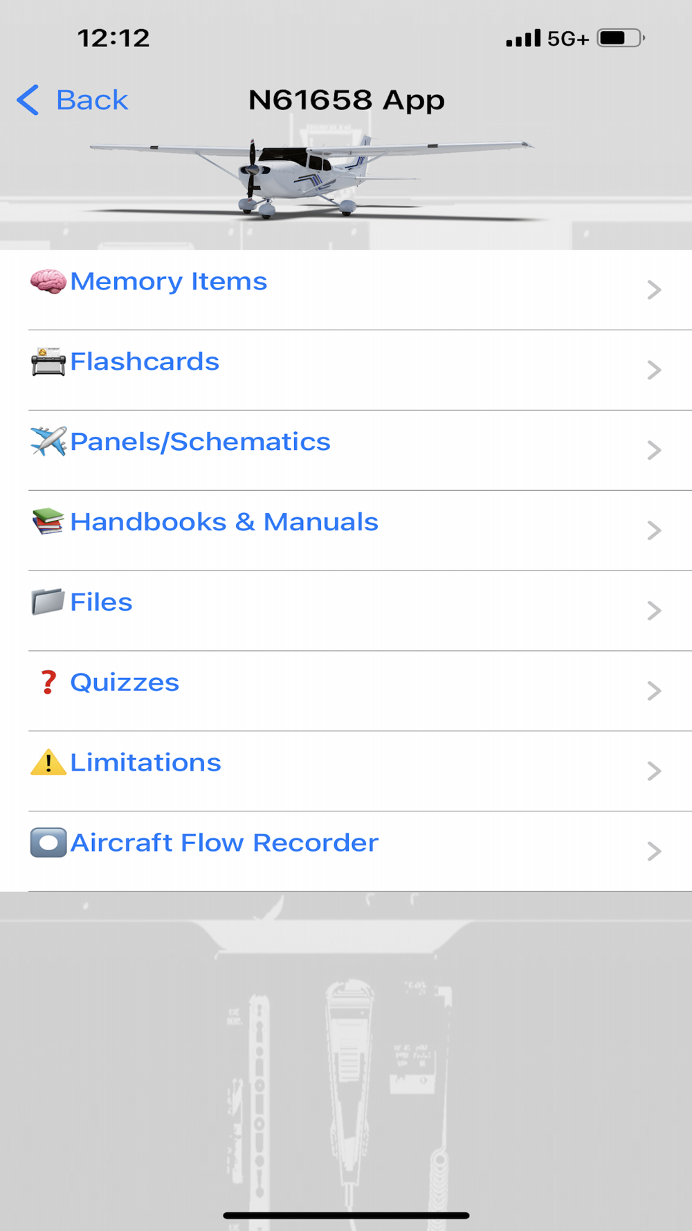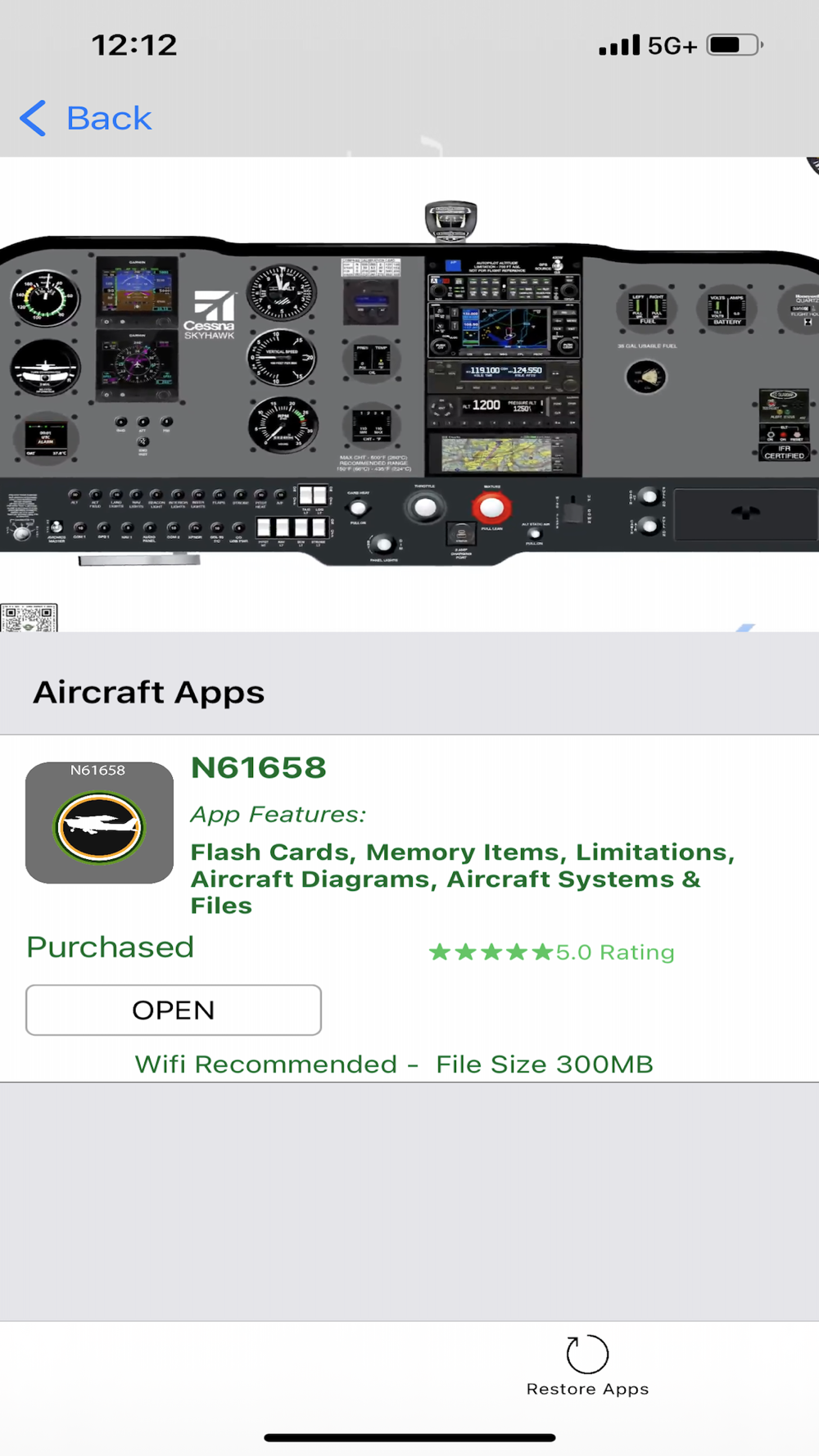 STEP 2: After AIRCRAFT APPS has downloaded to your device, tap Cessna Aircraft Apps on the Menu Screen and search through the in-app purchases for your aircraft.