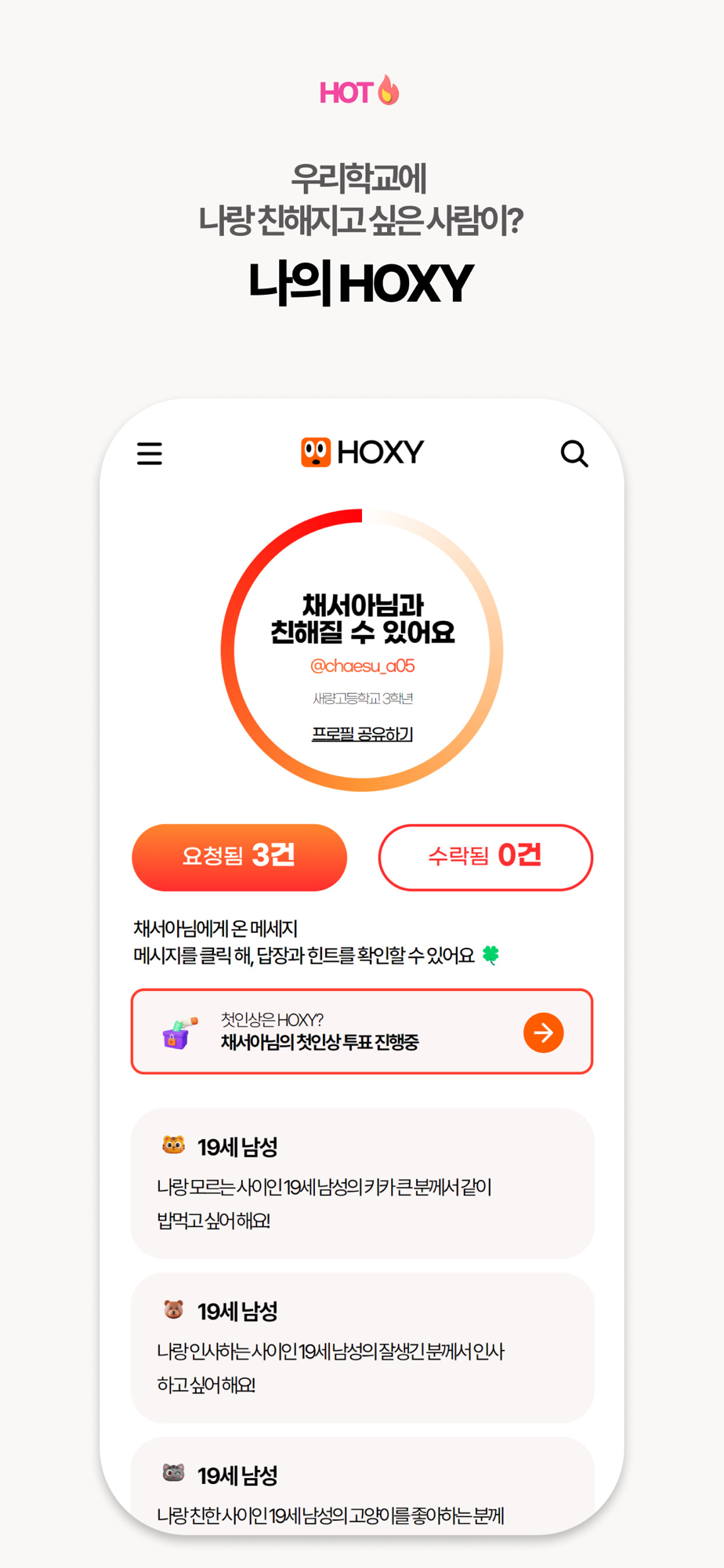 - HOXY에서는 사전에 지정된 메시지로만 친구들과 소통할 수 있어요