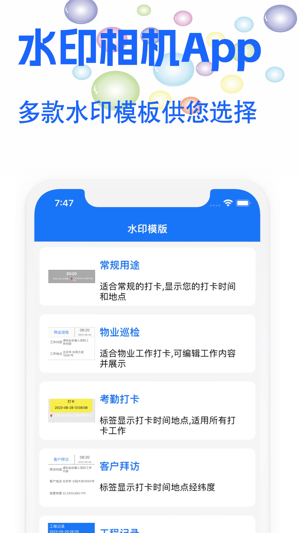 普通常见的模板、物业模板、保安模板、工程施工模板、执勤巡检模板、考勤打卡模板、客户拜访模板等水印模板,满足你的一切需求。