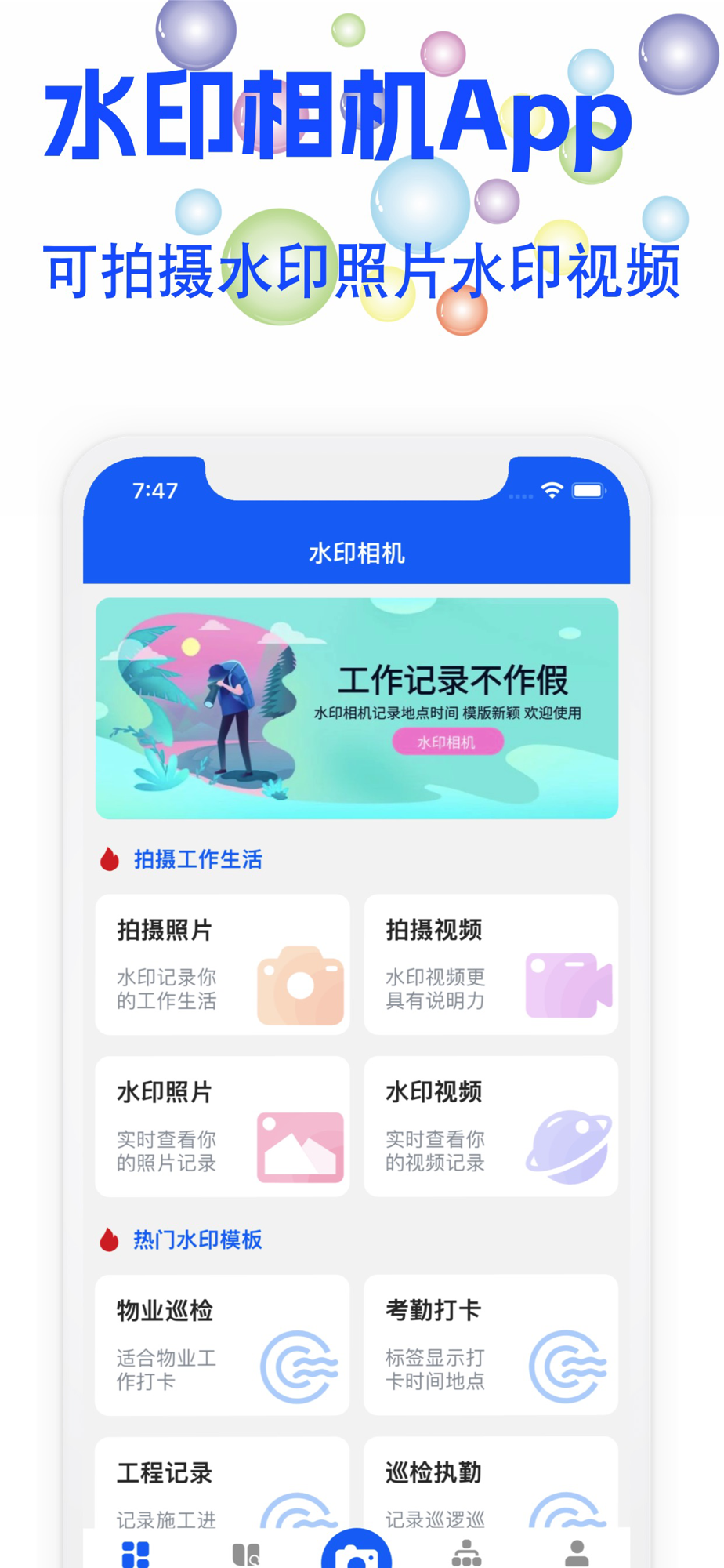 工作拍照、团队考勤打卡、工程管理、外勤拍照、物业巡检、安全巡检、旅行拍照、宝宝成长拍照、记录美好生活的小帮手!