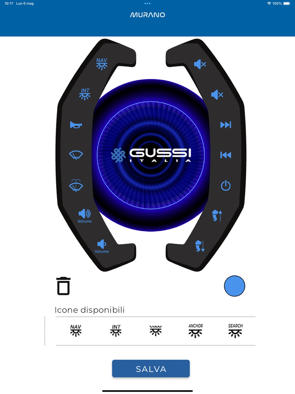 Tramite l’app Murano è possibile configurare la disposizione dei comandi nelle 14 posizioni, cambiare l’immagine e il logo del cliente piuttosto che il colore della retroilluminazione delle POWER WINGS.