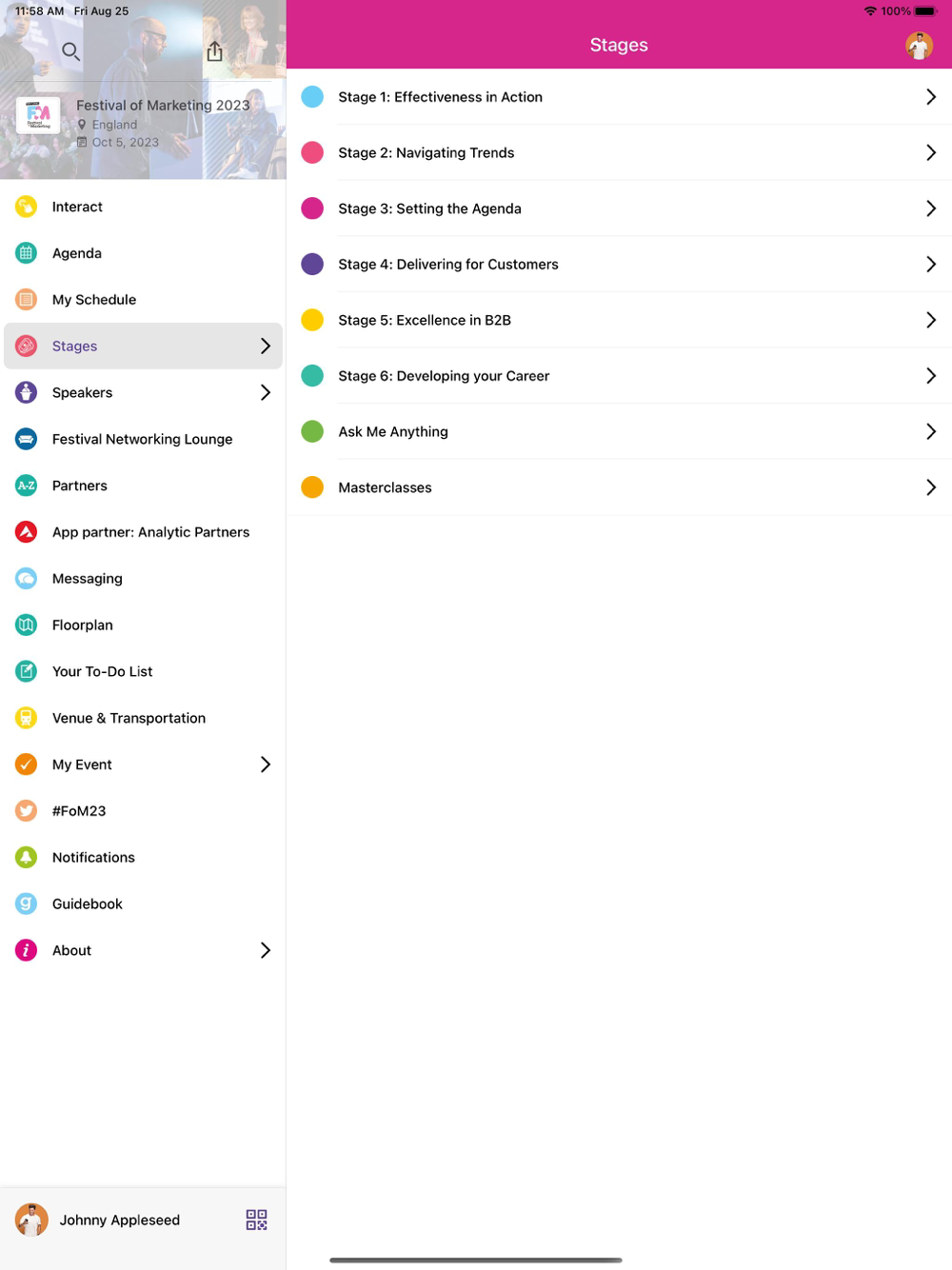 - 6 main stages packed with content: each tailored to a different marketing skill and specialism.