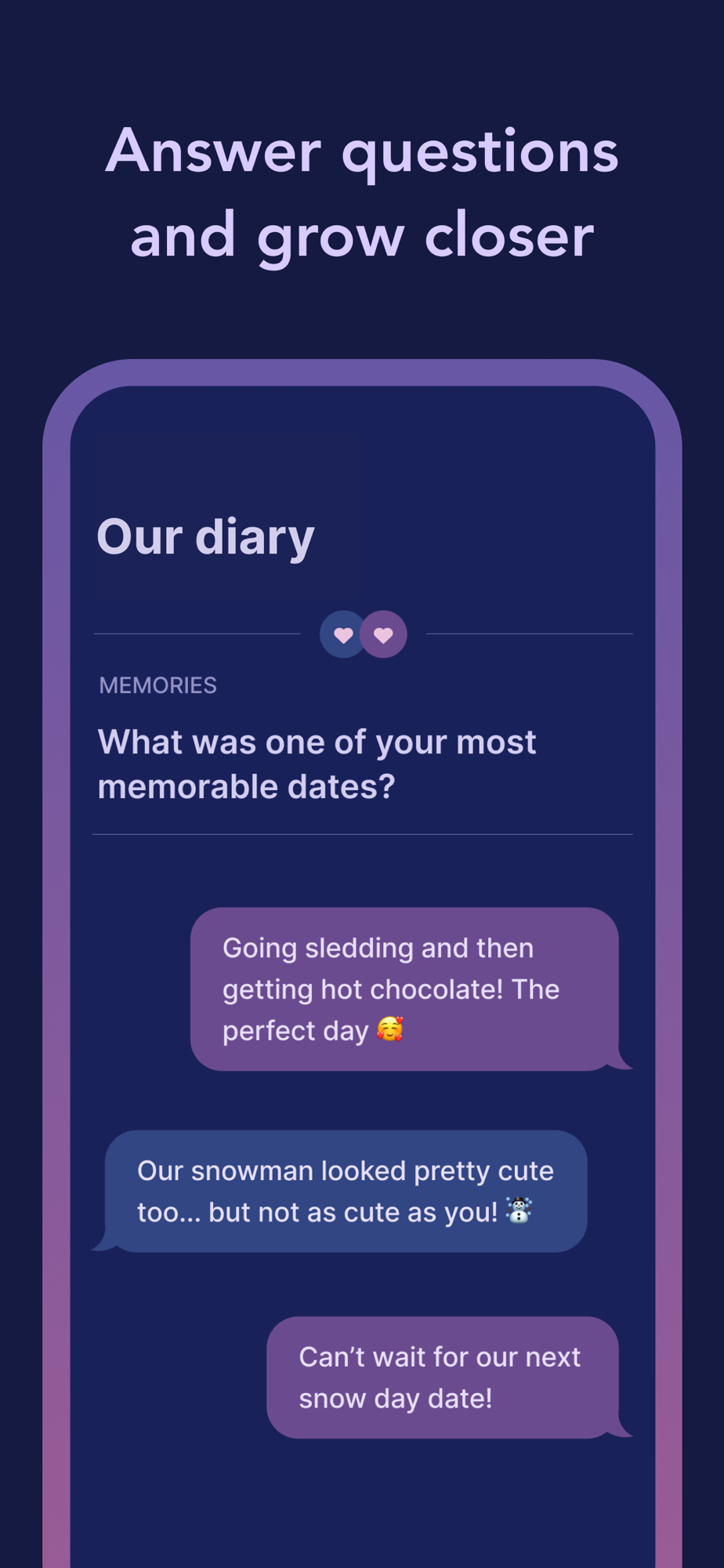 - Strengthen your bond with thought-provoking daily questions