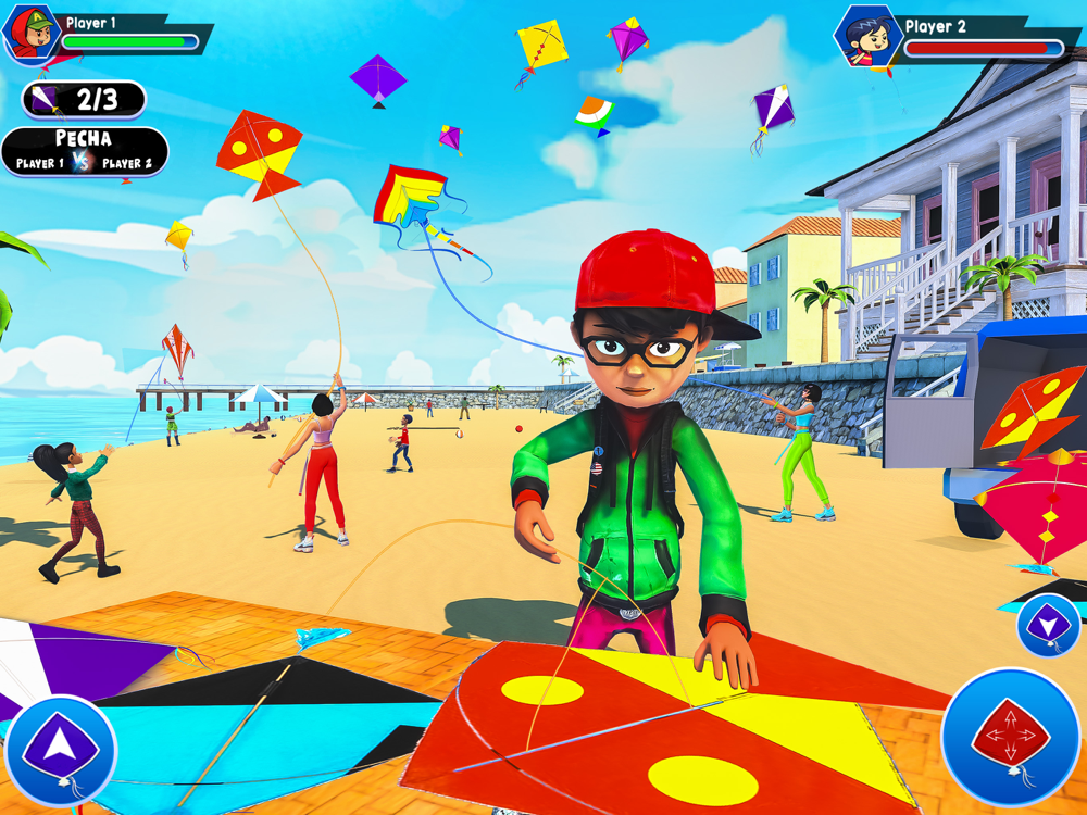 Check out all these awesome new models of kite for the festival! And guess what? You can earn even more points if you bring your own new kite model to the game! This is seriously the coolest kite flying game ever - it's in 3D and so realistic kite game! You'll learn all about the traditional sport of kite flying, or patang pipa cometa laying while playing Kite Game 3D. Plus, you might even become a superkite of kite flying! The weather conditions in the game are so realistic kite, it's like you're really outside flying kite. Make sure to try playing online to experience all the multiplayer features kite game. Kite games offline kite can be played to get an idea of what multiplayer kite games are like.
