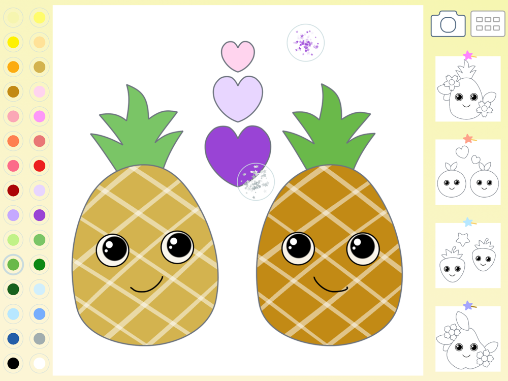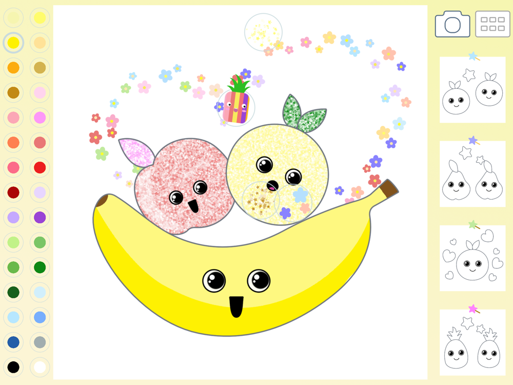 Your child can color endless pictures of fruits: strawberry, apple, pear, banana, pineapple, orange ... They can even use the magic stick for a different coloring experience!
