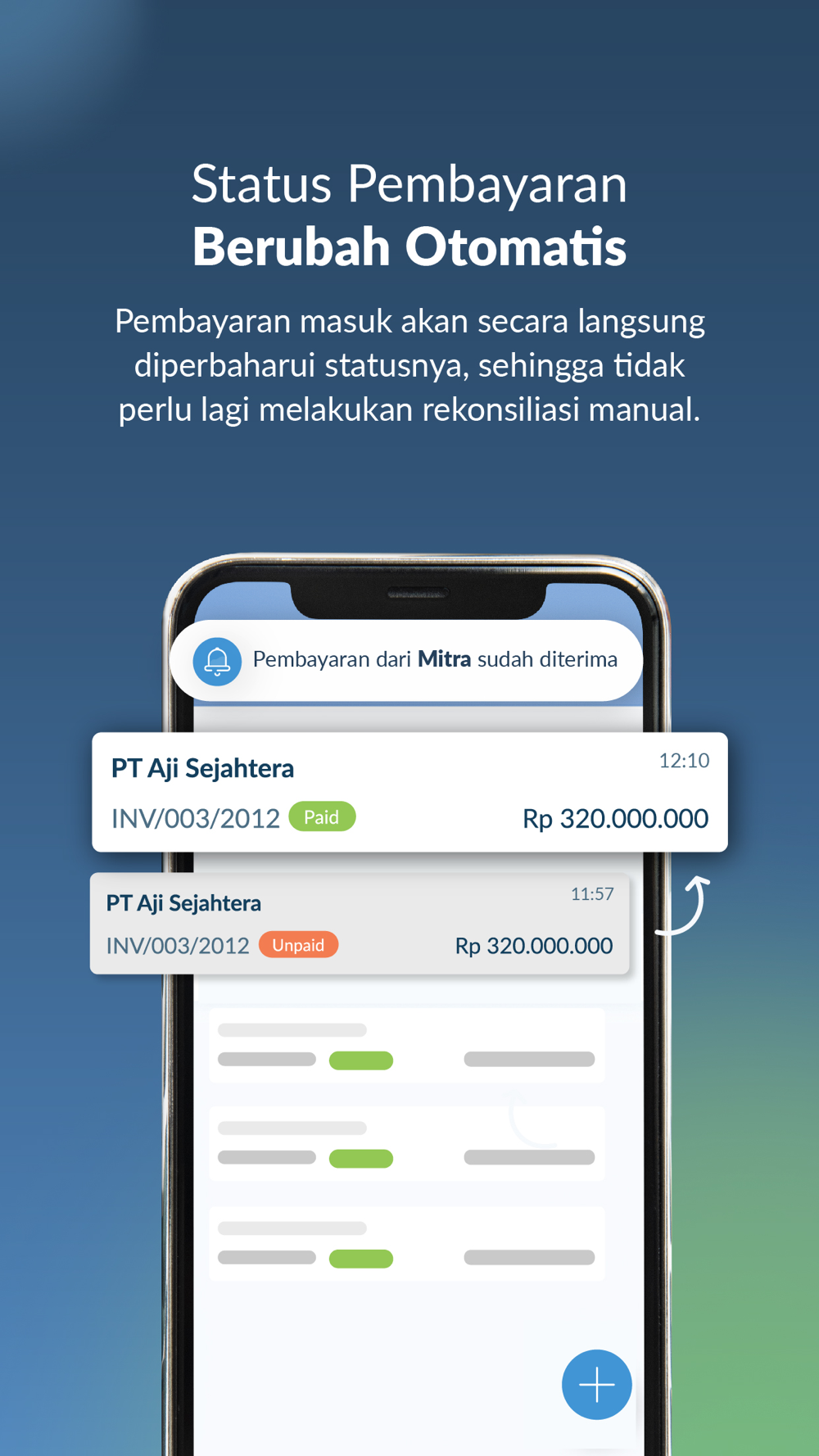 - Tidak perlu mengingatkan supplier atau mitra bisnis karena notifikasi pembayaran akan terkirim otomatis ke email dan WhatsApp.