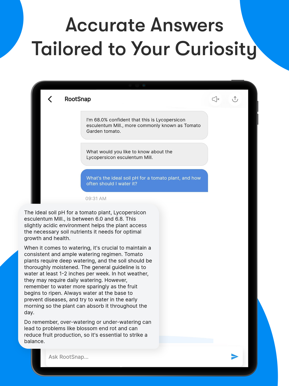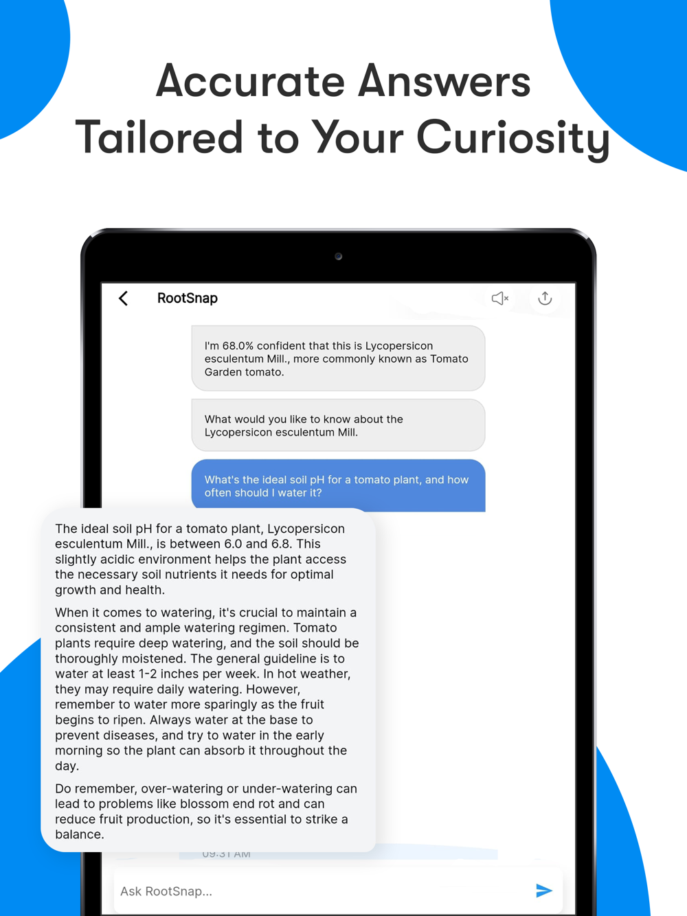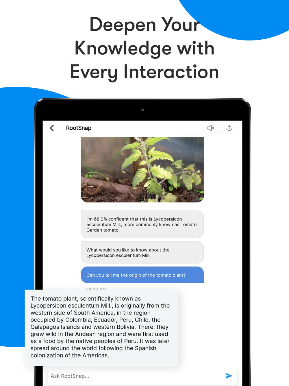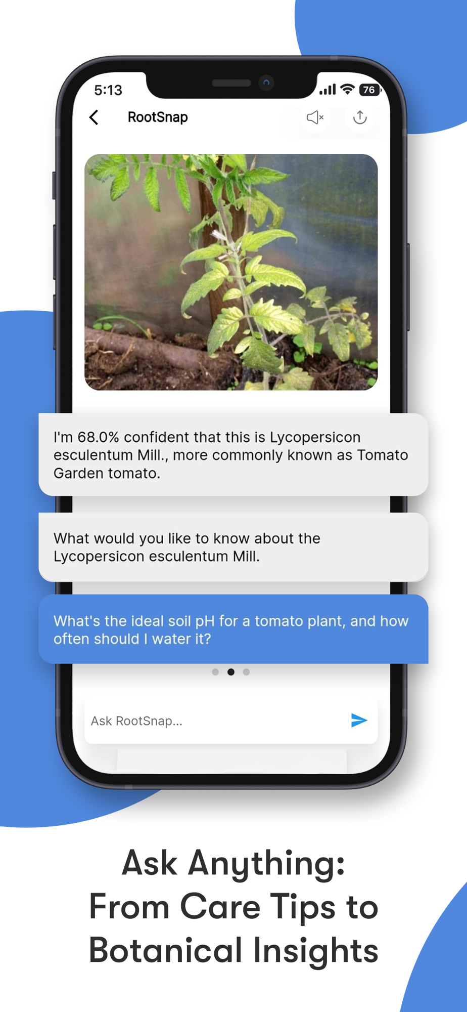 * Interactive AI Chat: RootSnap isn't just about identification. Our AI-powered chatbot provides a conversational experience, answering your questions and offering insights about the plant you've just discovered.