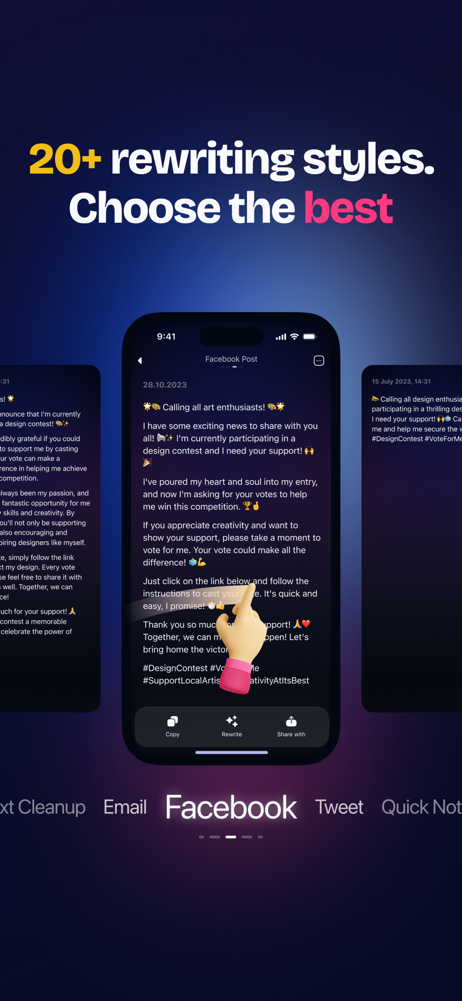 • Share with ease: send your text via WhatsApp, Telegram, email, and more