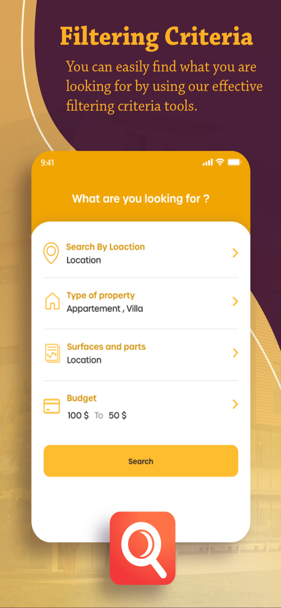 تطبيقنا هو منصة شاملة لبيع وشراء واستثمار العقارات بجميع أنواعها. يوفر التطبيق واجهة سهلة الاستخدام وميزات متقدمة لمساعدتك في العثور على العقار المناسب وإتمام عملية الشراء أو الاستثمار بكل سهولة وأمان.