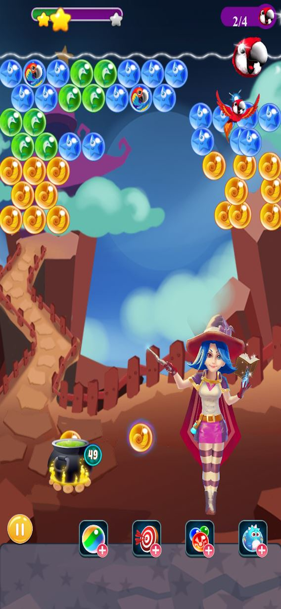 Help Rena the sorceress restore peace to the realm by matching bubbles! With the magical aiming line blast and pop bubbles with precision! In this explosive bubble shooting adventure, solve the puzzles to free her parrots, pop the bubbles to save the owls, and shoot to free the fairies and rescue their Queen. Cast spells and power up to blast your way through increasingly challenging matching puzzle levels.