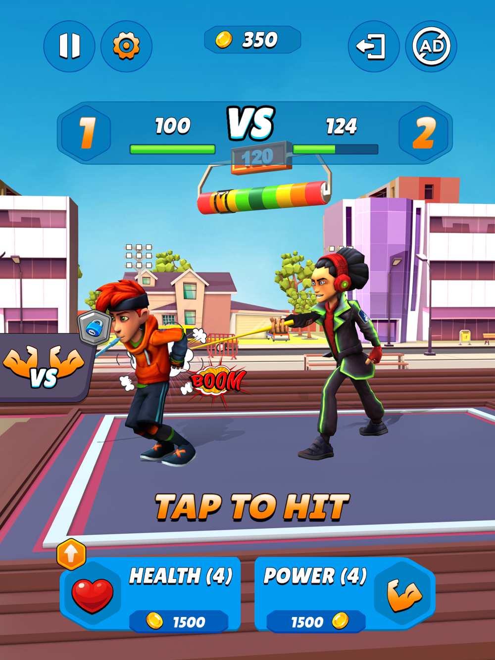 Kick the player and enjoy players reaction. Smash the player with power full strike and bear the pain when opponent hit your player. Keep an eye on the power, use power ups to upgrade your player and hit forcefully. Your every strike matters for the win.