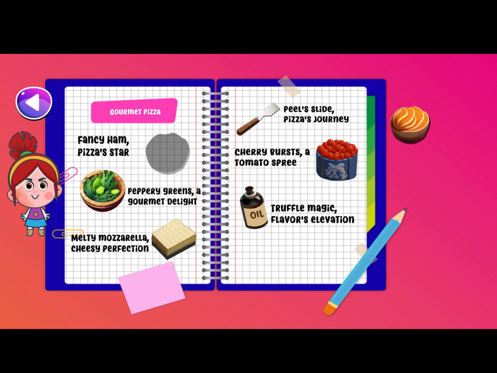 Step into an upscale pizza parlor with a brick oven and gourmet toppings. Your mission is to find prosciutto, arugula, mozzarella, truffle oil, pizza peel, and cherry tomatoes. Craft an exquisite gourmet pizza to unlock the next level.