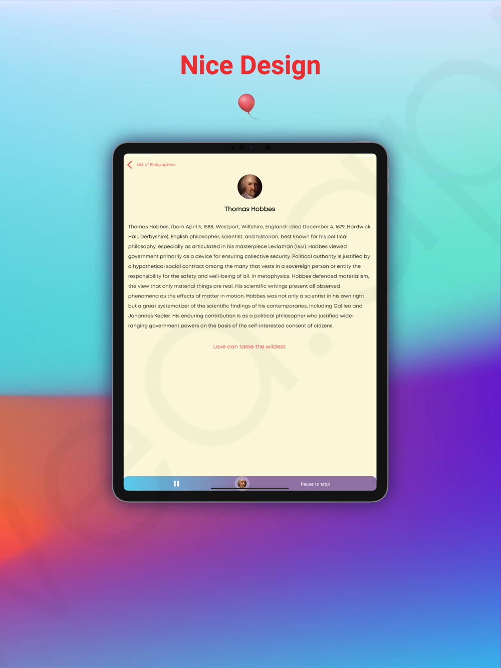 We understand the importance of accessibility. Our app includes a listening mode, making it an invaluable tool for individuals with dyslexia and anyone who prefers auditory learning. With just a simple tap of the play button, you can absorb all the information about these remarkable philosophers with ease.