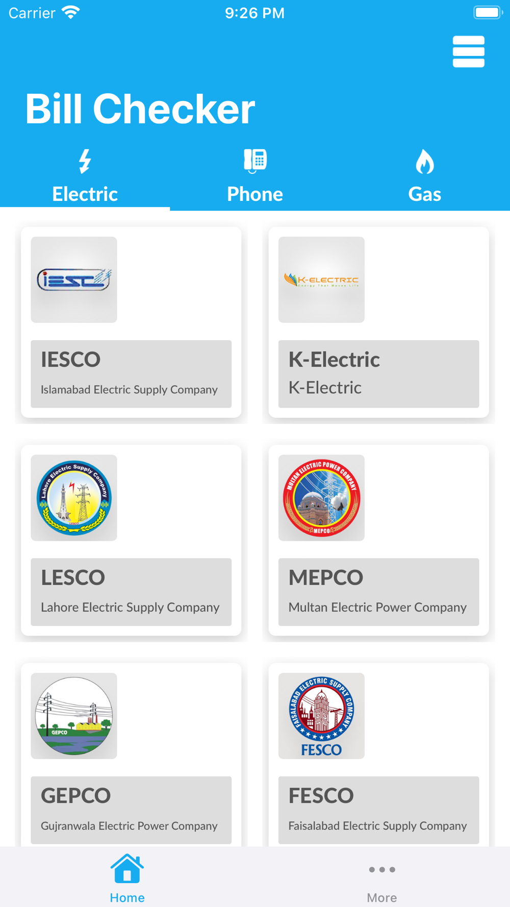 Multiple Services: Check bills for electricity, phone, and gas services with ease.