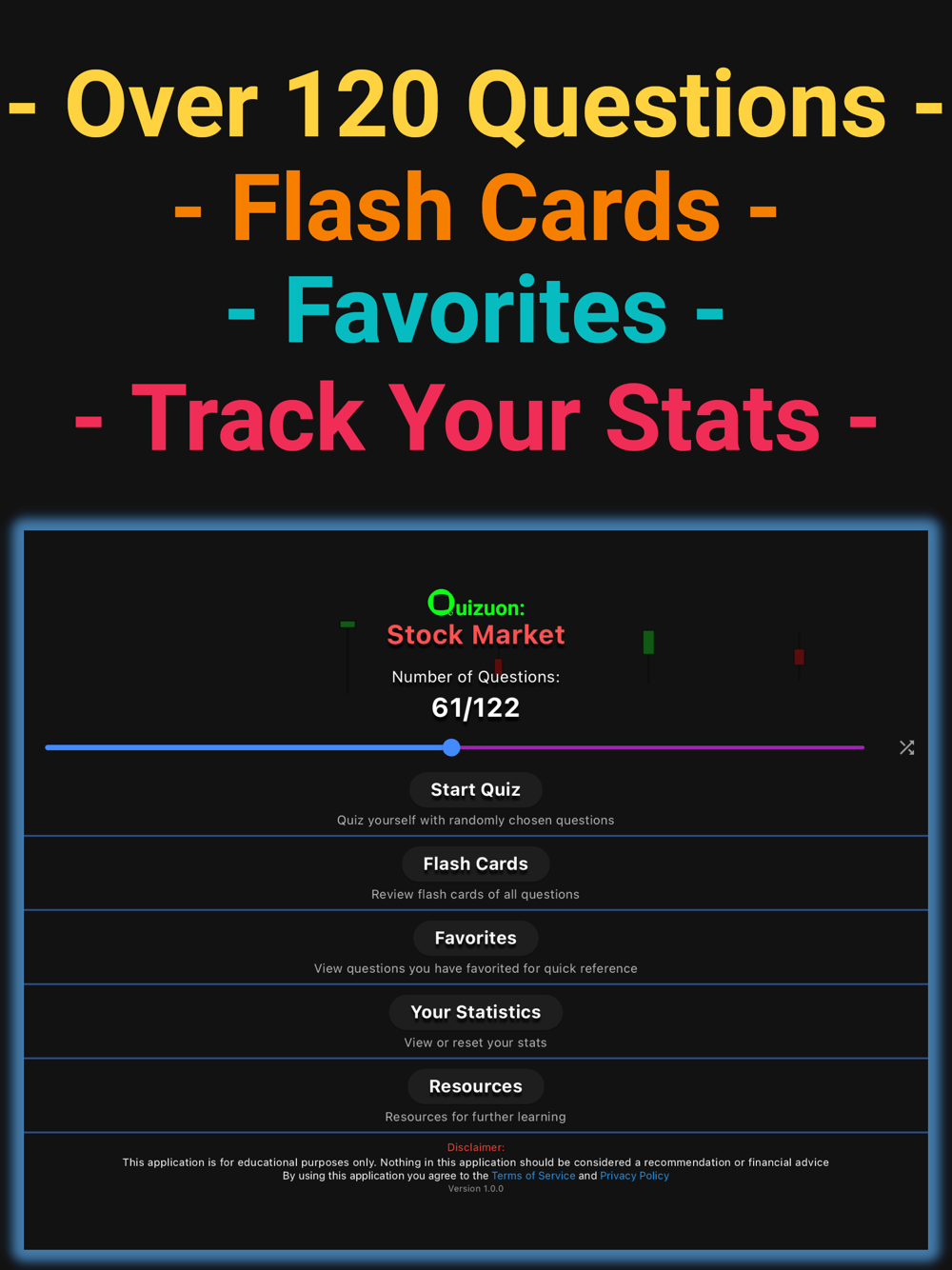 Whether you are a complete beginner or have some experience with the United States markets, Quizuon: Stock Market is designed to help enhance your knowledge and proficiency within them.