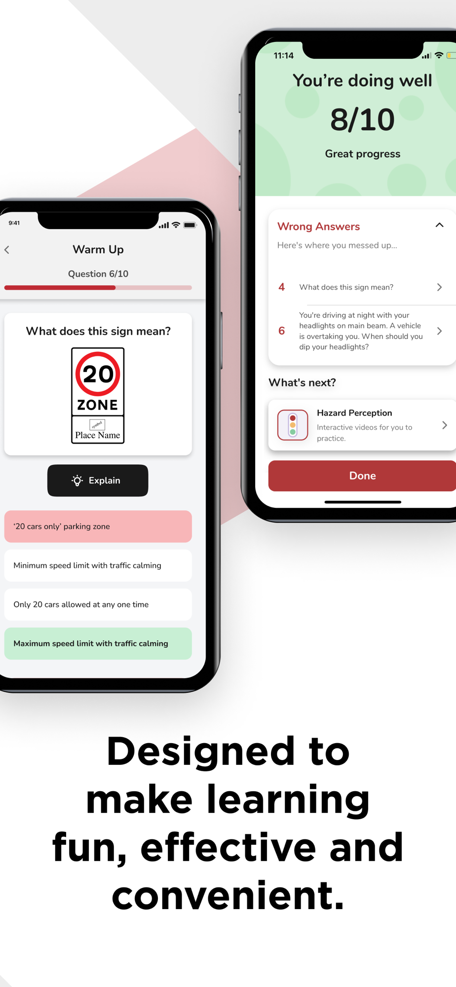Our theory app employs interactive quizzes, games and videos to engage and challenge your understanding. Practice makes perfect, and with our mock tests, you'll be well-prepared to tackle the real theory test confidently.