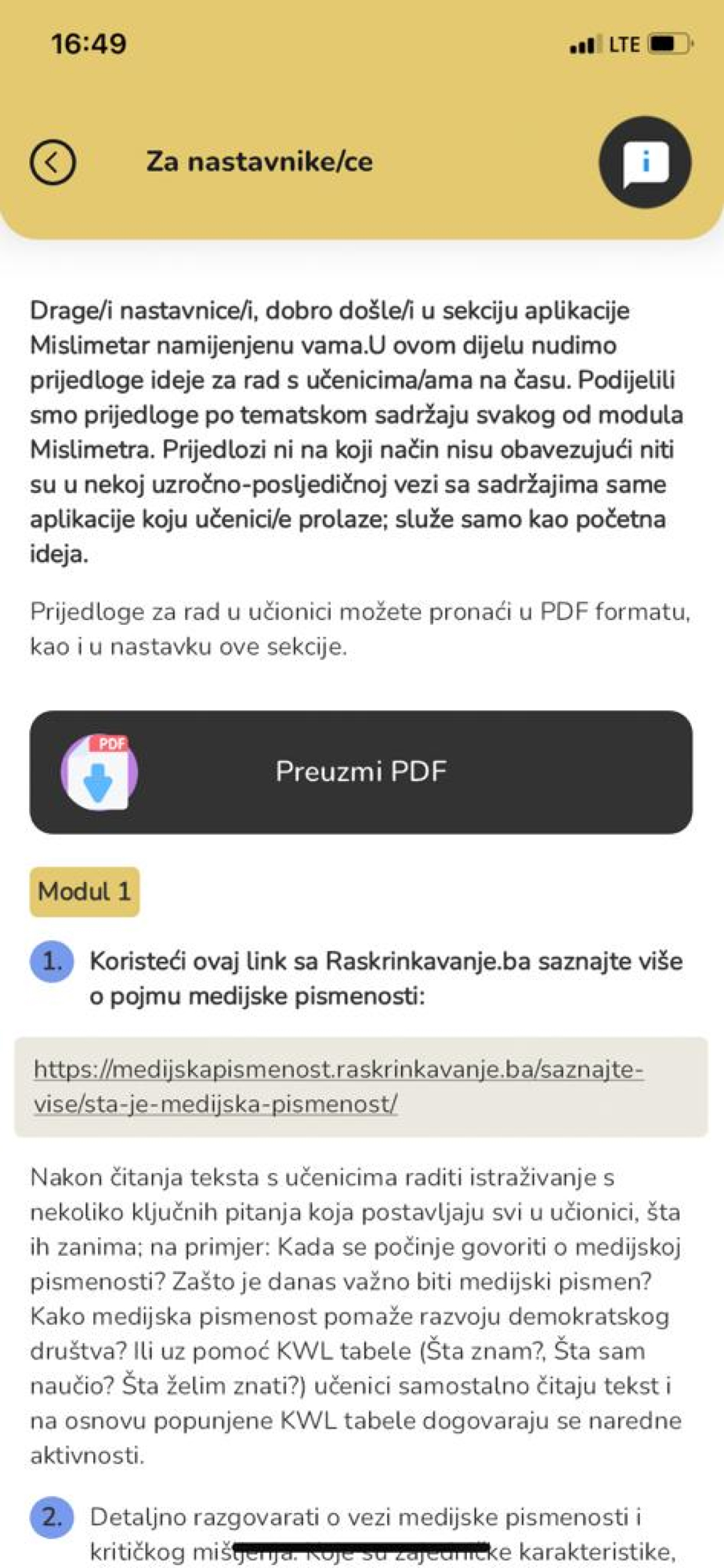 The mobile application Mislimetar is an educational and entertaining tool for formal and informal education. It aims to encourage the development of critical thinking and media literacy among young people.