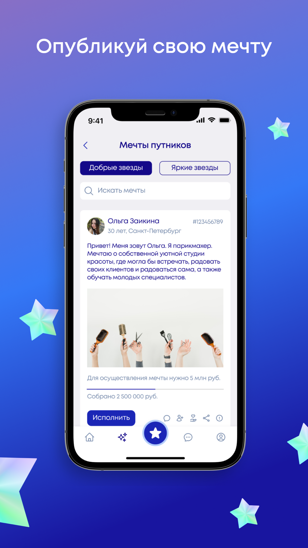 • делиться своим контентом с другими пользователями на пути к мечте;