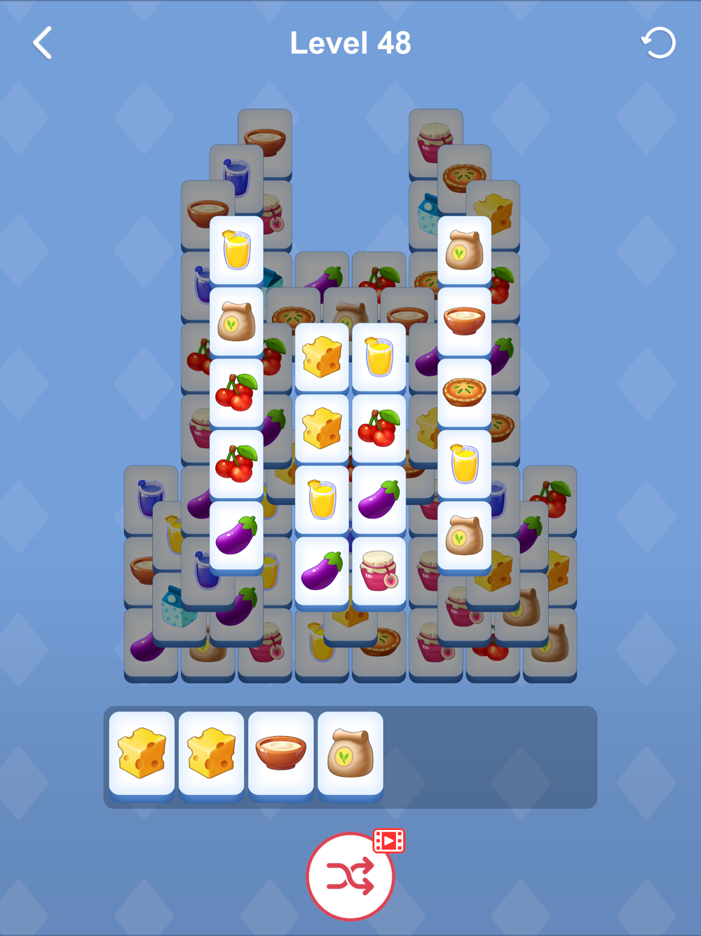 ◆ Just click to put the tiles into the box. Three identical tiles will be collected. Collect all the tiles as quickly as possible.