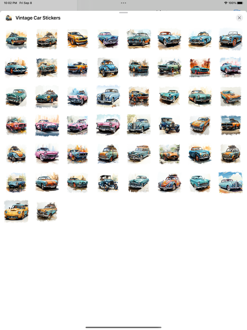 Introducing our Vintage Cars iMessage Stickers Pack – a delightful collection of classic automobiles that will transport you back in time with every message. Revive the golden era of automotive design with these meticulously crafted stickers featuring iconic vehicles from the past. From sleek, chrome-accented convertibles to rugged, adventure-ready off-roaders, our sticker pack celebrates the timeless charm and nostalgia of vintage cars. Whether you're a car enthusiast or simply appreciate the elegance of yesteryears, these stickers add a touch of retro flair to your iMessage conversations. Spice up your chats, share your passion for vintage rides, and relive the elegance of bygone eras with our Vintage Cars iMessage Stickers Pack. Download it now and let your messages roll in style!