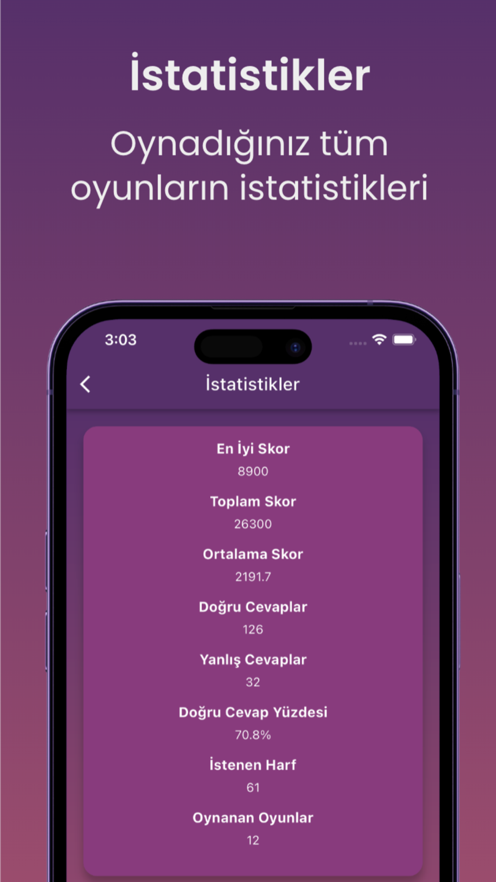 Farklı joker seçeneklerini kullanabilir ve detaylı istatistiklerinizi görebilirsiniz.