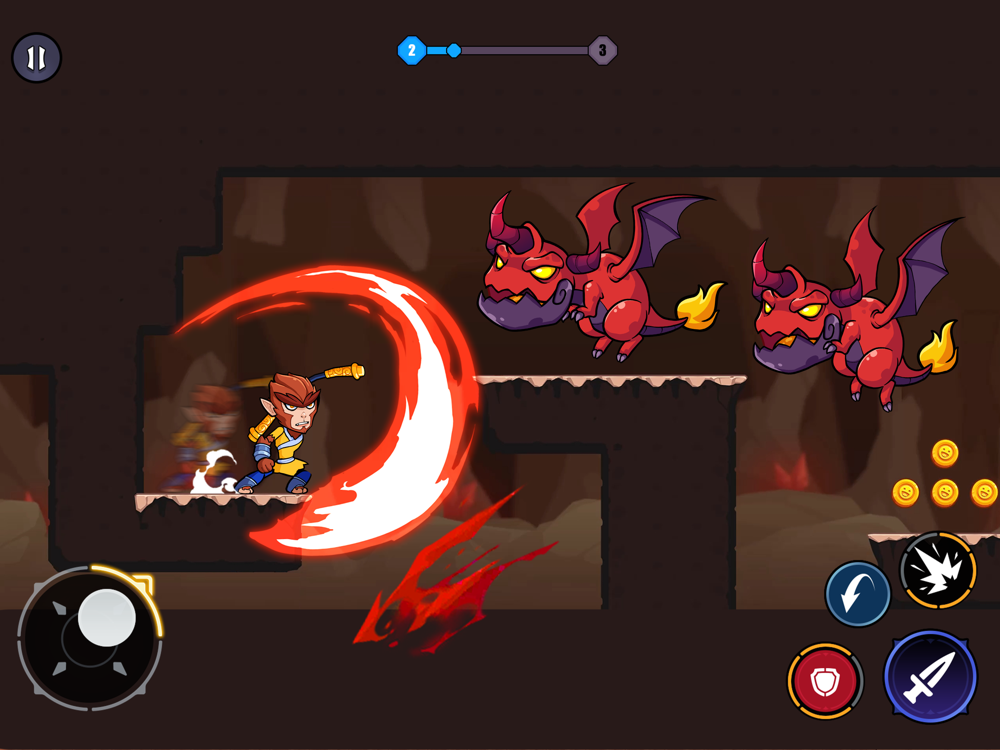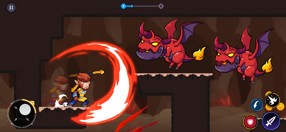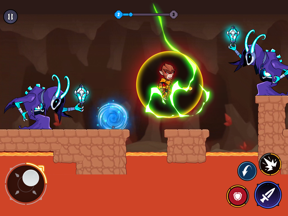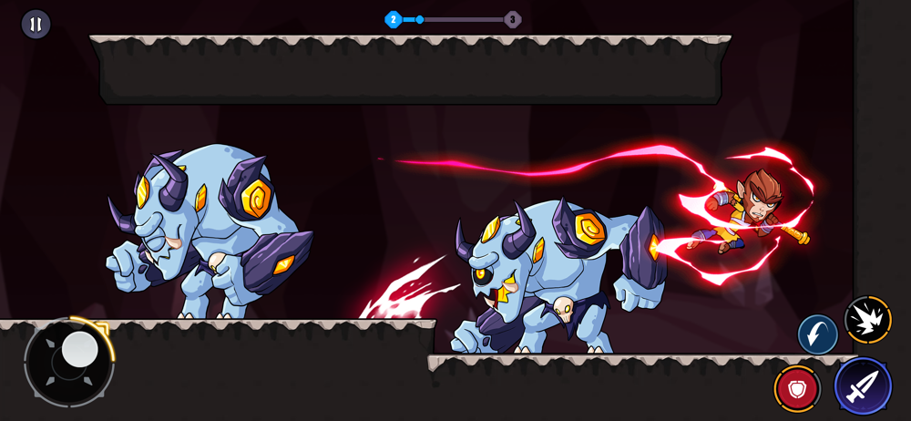 - Use buttons on screen to jump, move and attack.